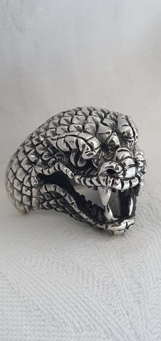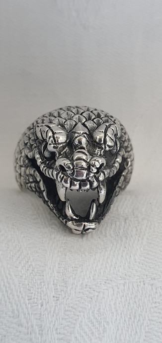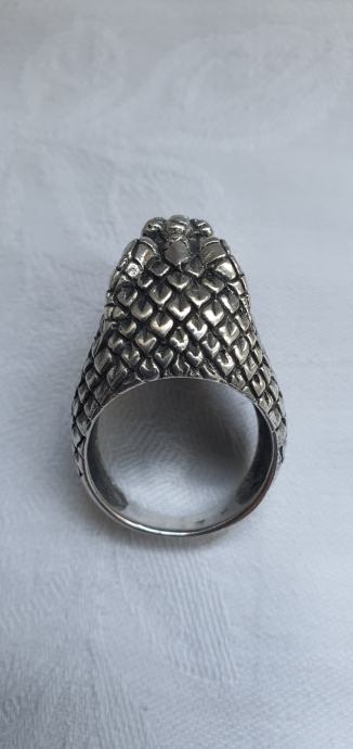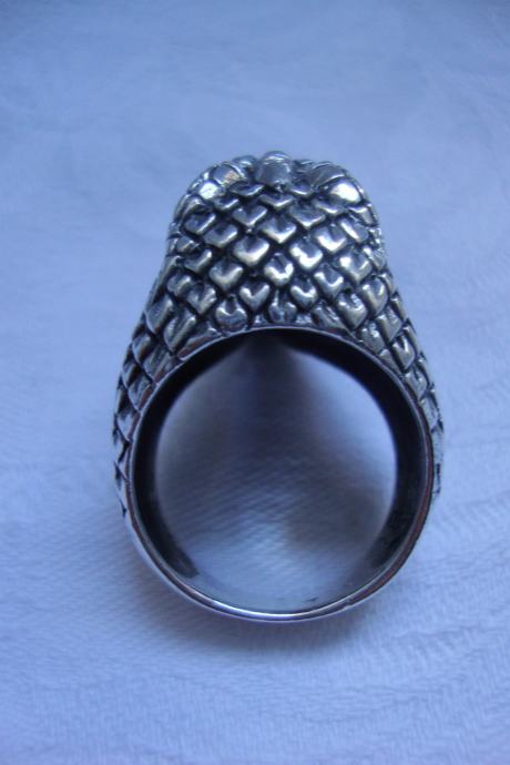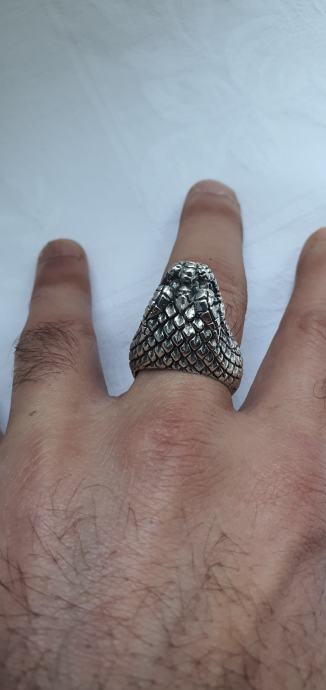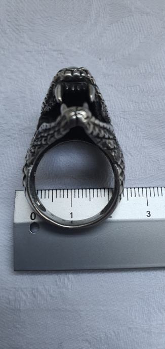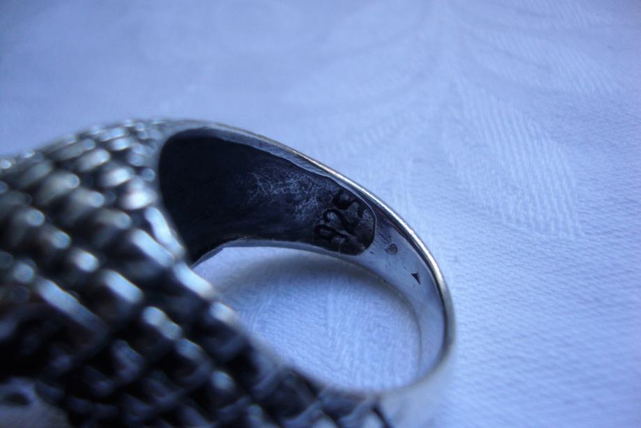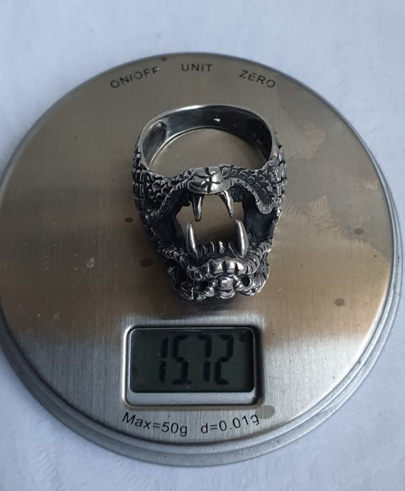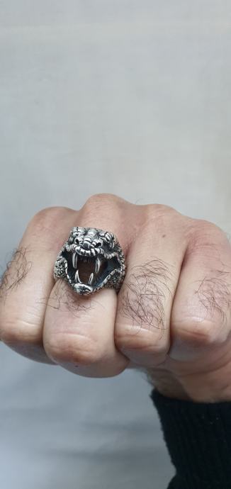 Unutarnja velicina 21 mm promjera visina prstena 4 cm x 2,5 cm masinan 15,72 grama vrlo velik i raskošan moćan muški prsten