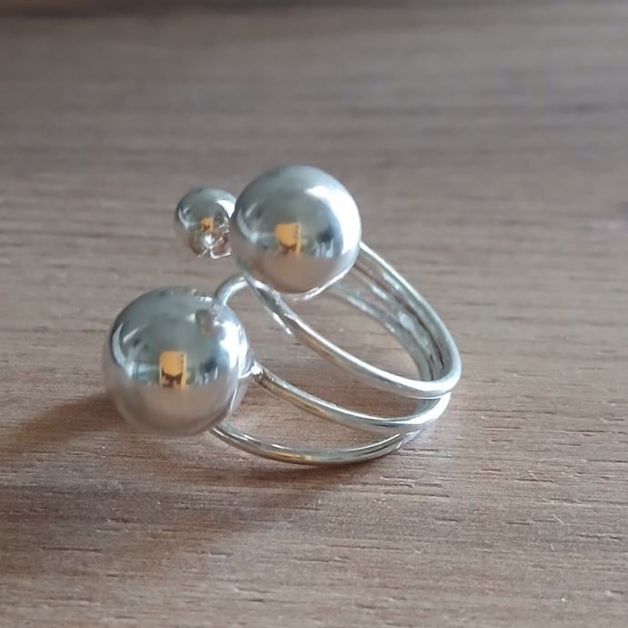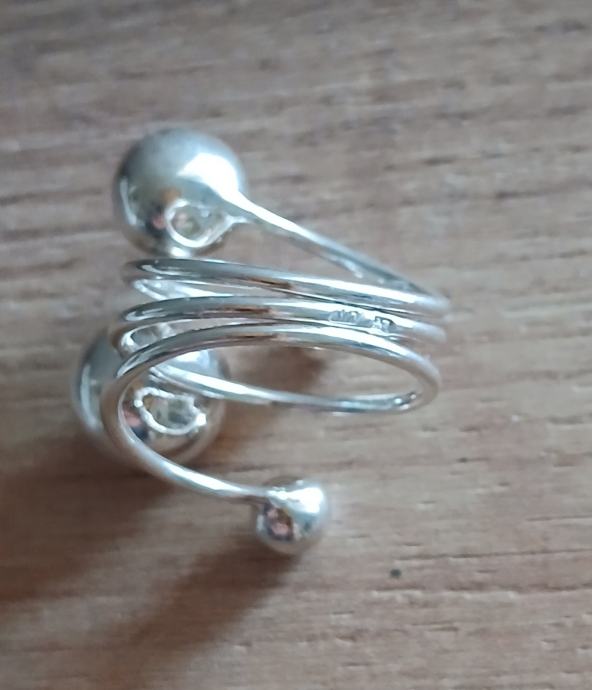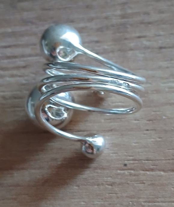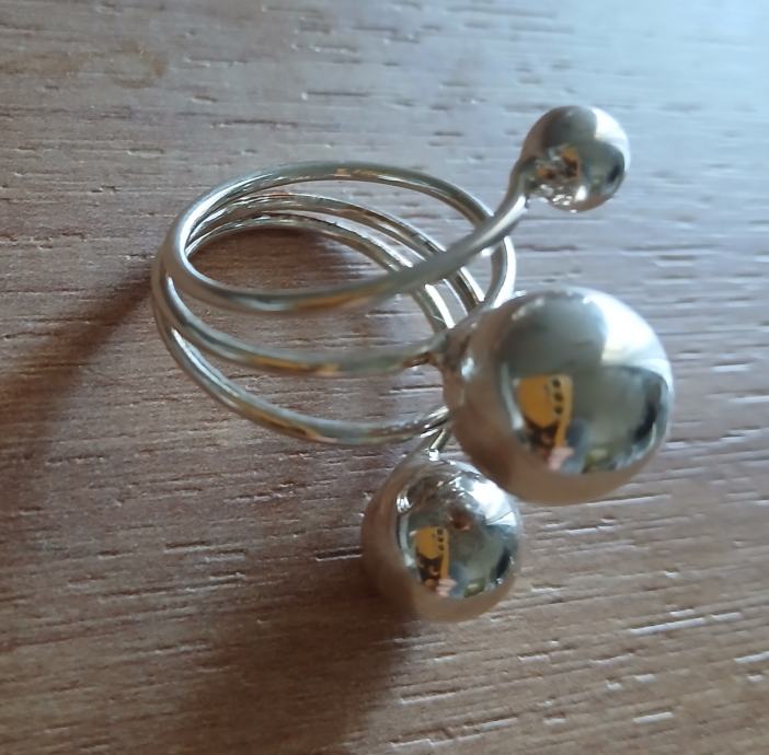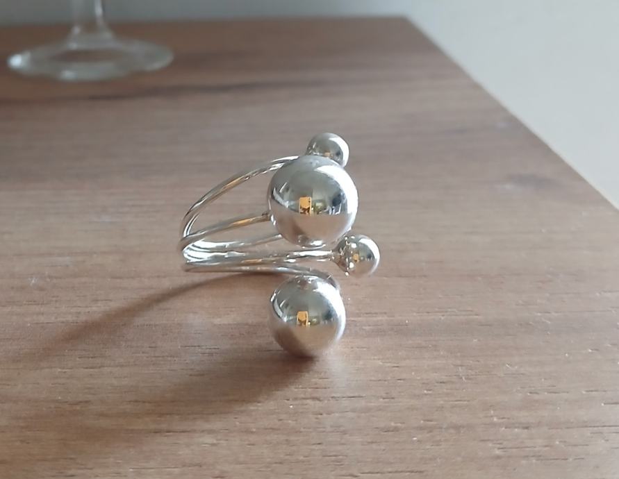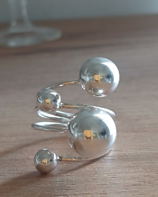 Prsten srebrni, savršen, podesiv, veći, sa kuglicama