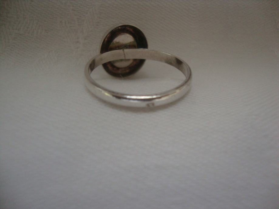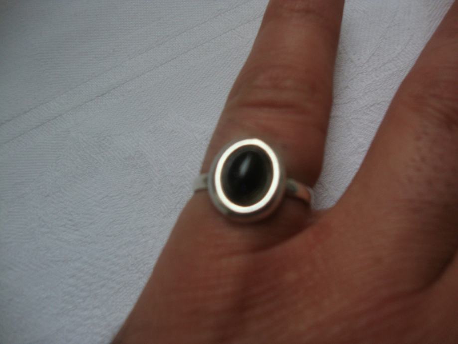 Krasan ovalni prsten ukrasen crnim oniksom umutarni promjer 18 mm ukrasni ovalni dio 1 2 cm x 1 cm ,potpis majstora na vanjskom rubu