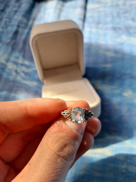 Srebrni prsten s plavim topazom
