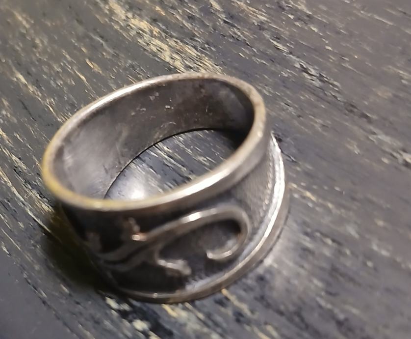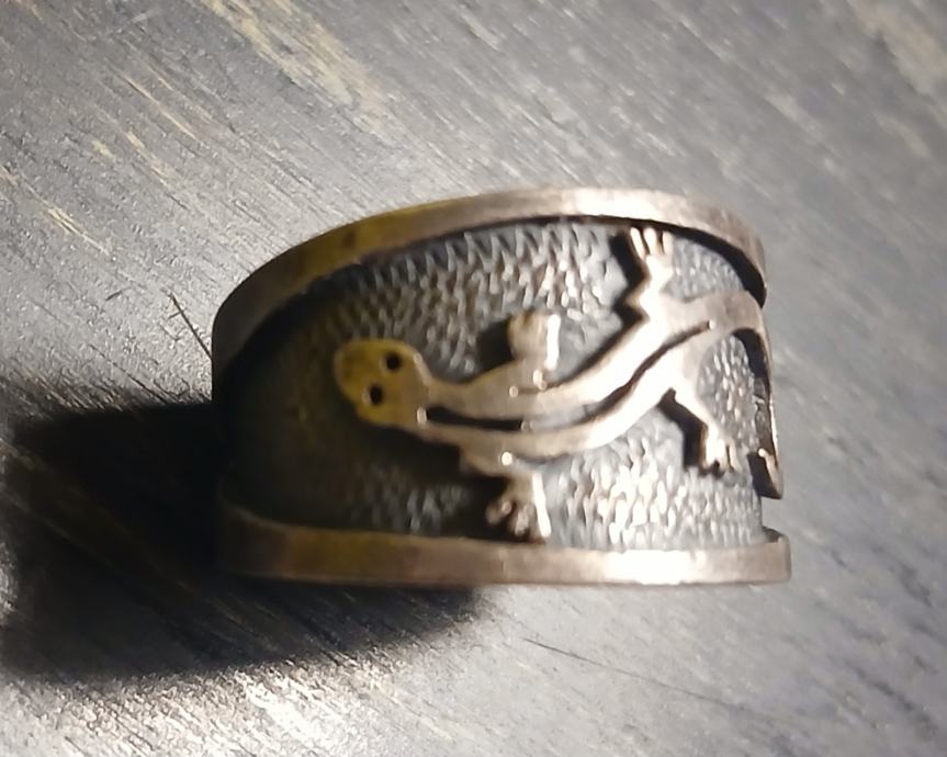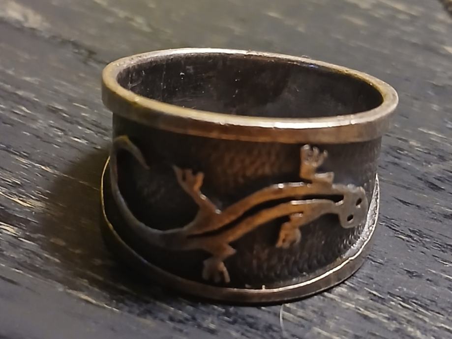 Prodajem zanimljivi srebrni prsten s motivom salamandera, oko 19 mm
