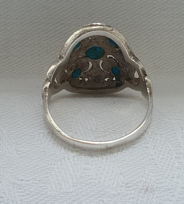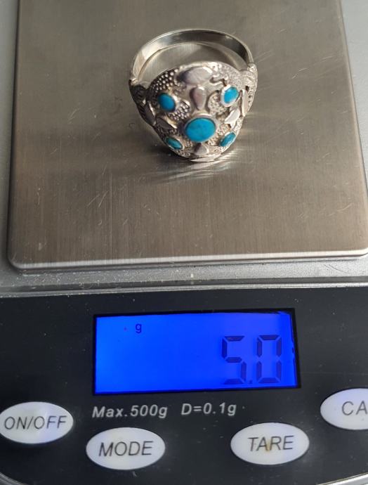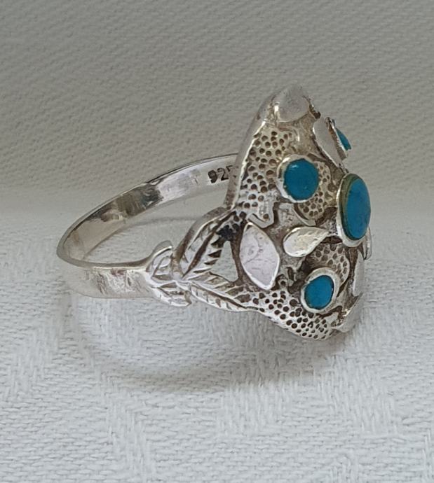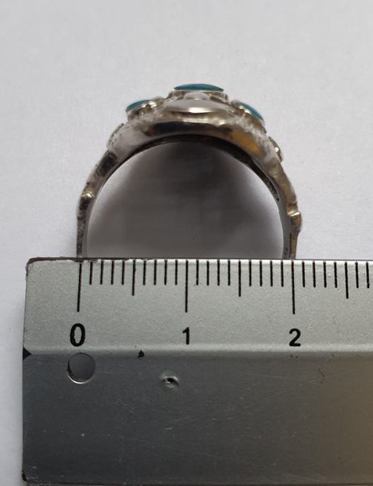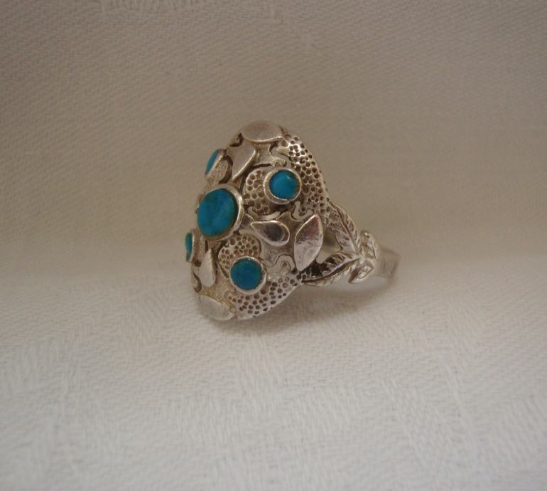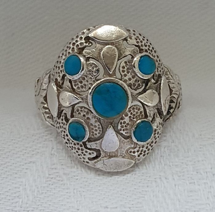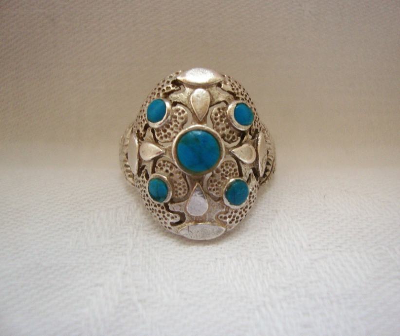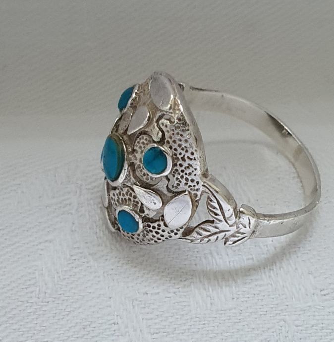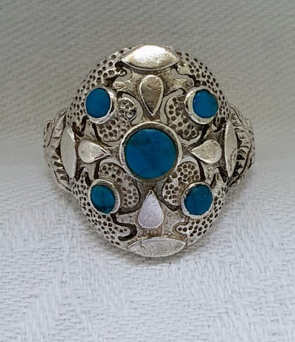 Predivan veliki raskošni srebrni prsten ukrašen tirkiz kamenjem