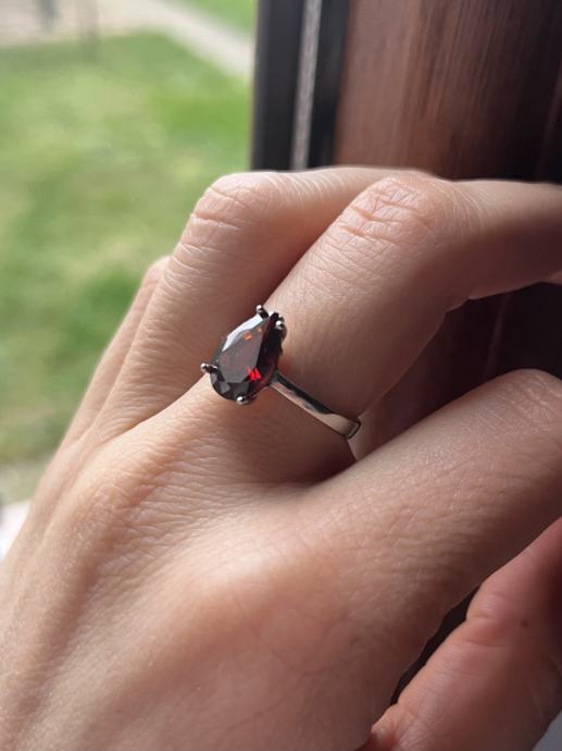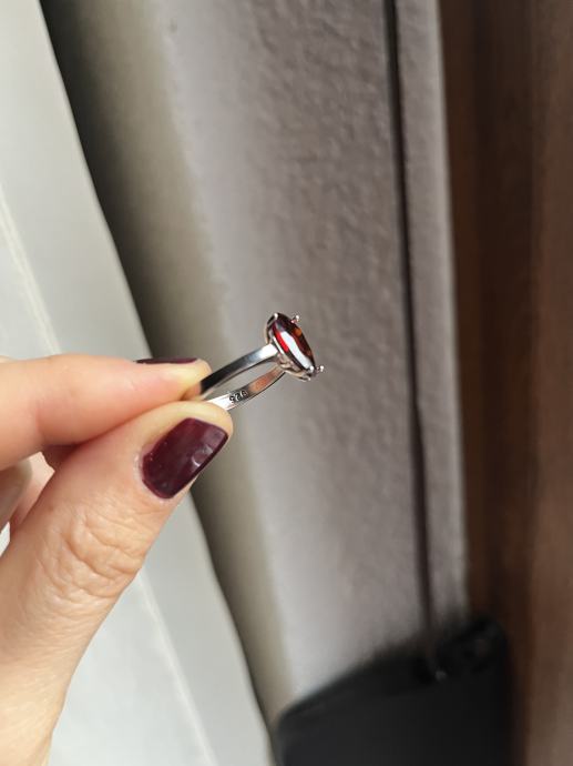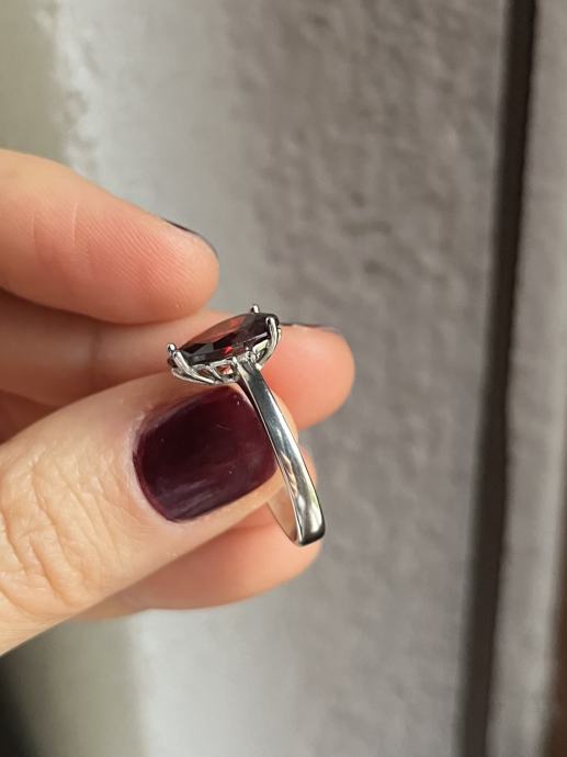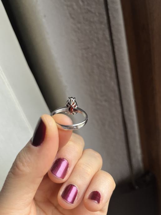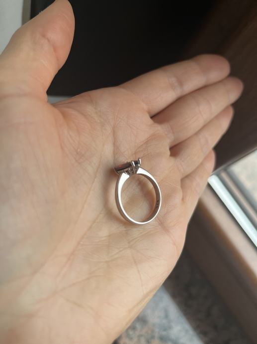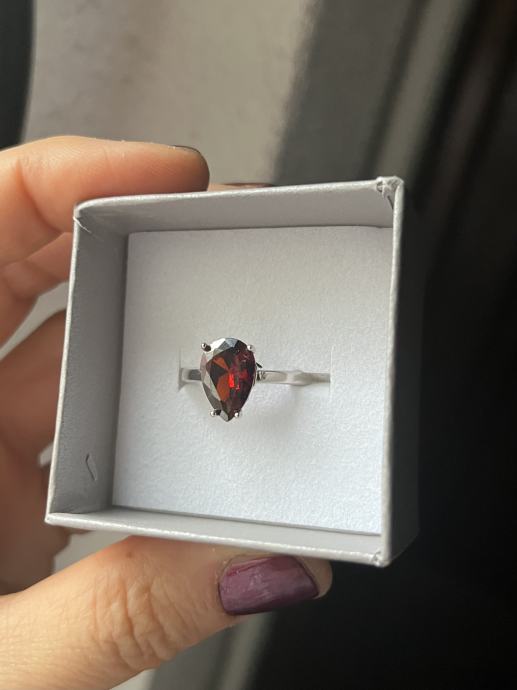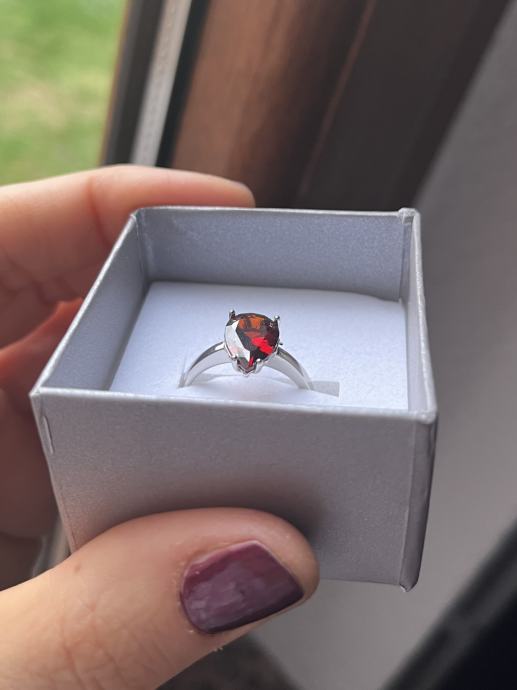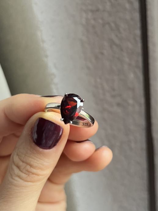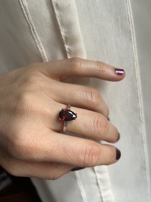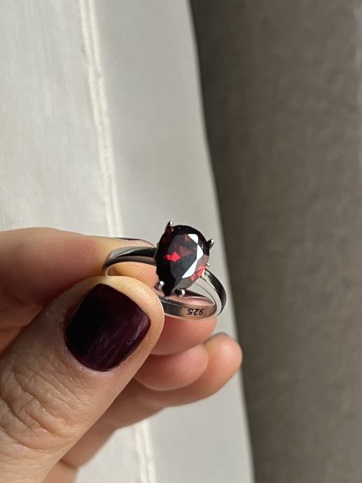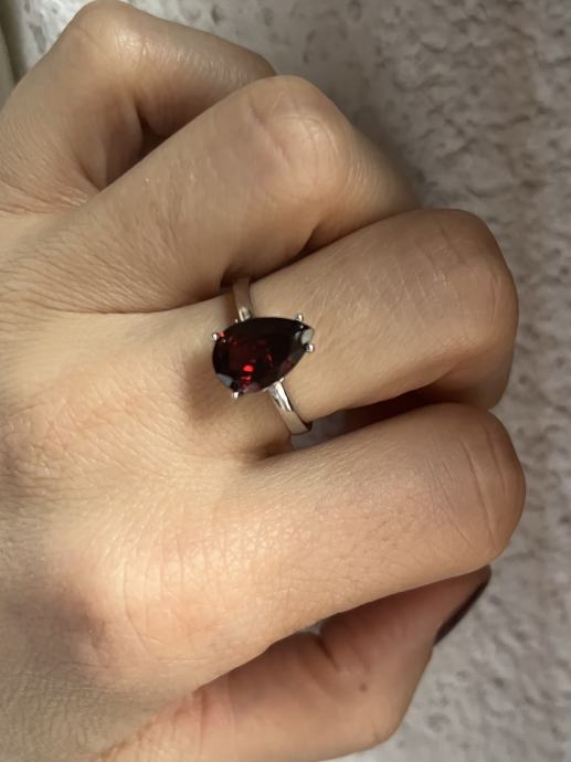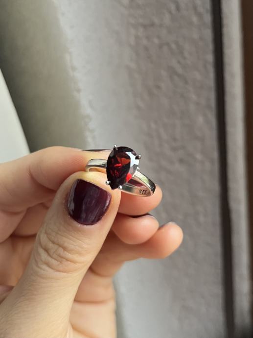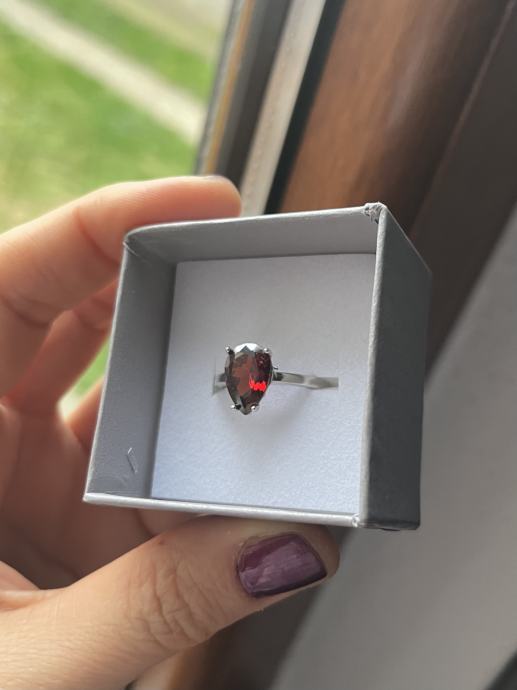 Srebrni prsten s većim bordo cirkonom, 925, novi, nikada nošen. Unutarnji promjer prstena je oko 18,5mm.