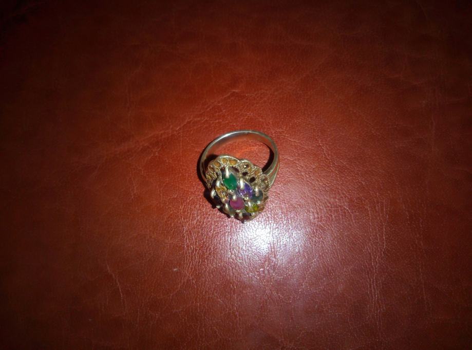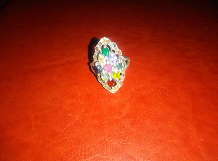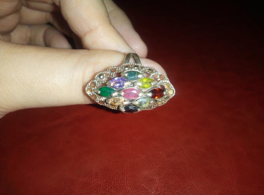 Stari srebrni prsten sa šarenim kamenjem, u dobrom stanju.