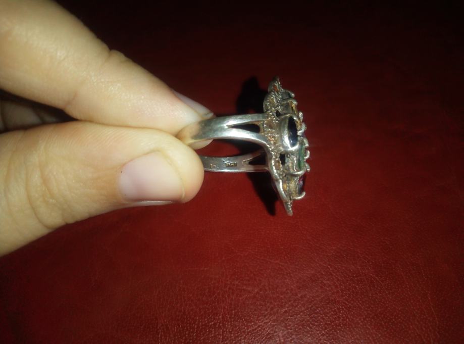 Stari srebrni prsten sa šarenim kamenjem ???, 18mm, 6g