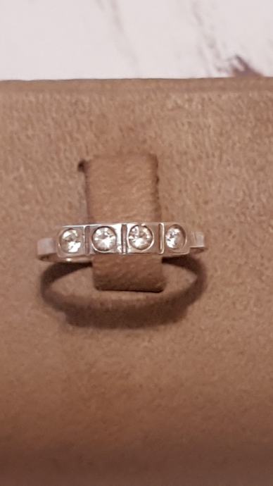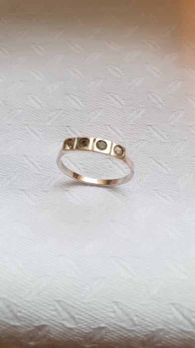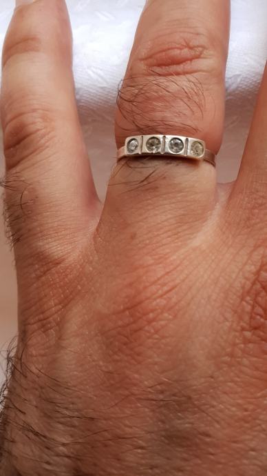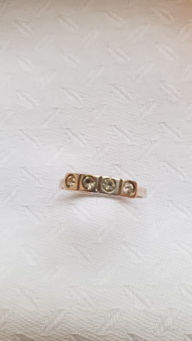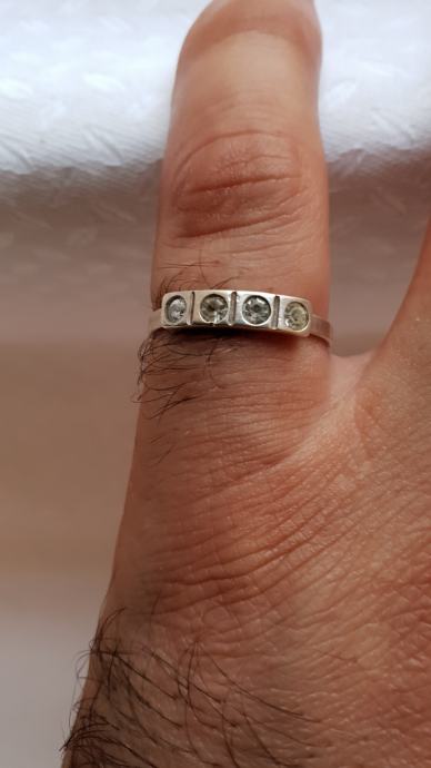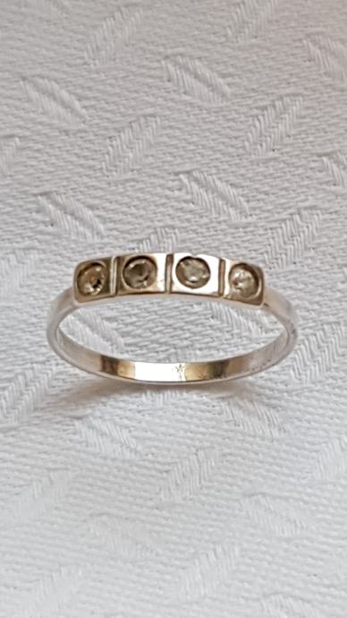 Vintage prsten sa 4 cirkona promjer unutarnji 17,8 mm -18 mm,očuvan ,stilski art deco ,stare oznake sr.