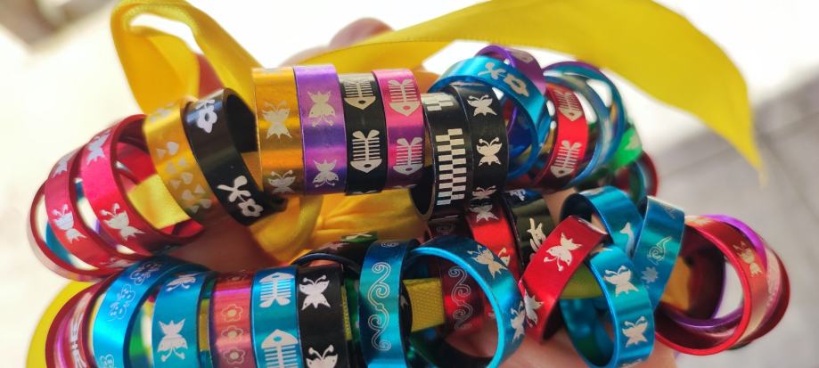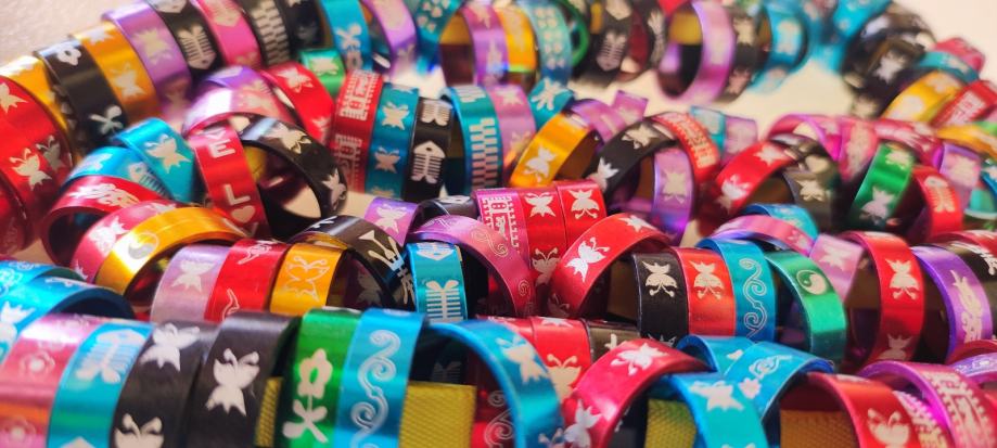 Prstenje dolazi u bogatom miksu metalik boja – uključujući crvenu, plavu, zelenu, ljubičastu, ružičastu, crnu i druge žive nijanse.