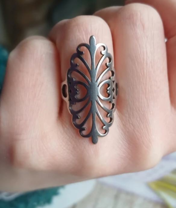 Predivan vitičasti prsten od čelika. Promjera 17mm. Nov, nenošen.