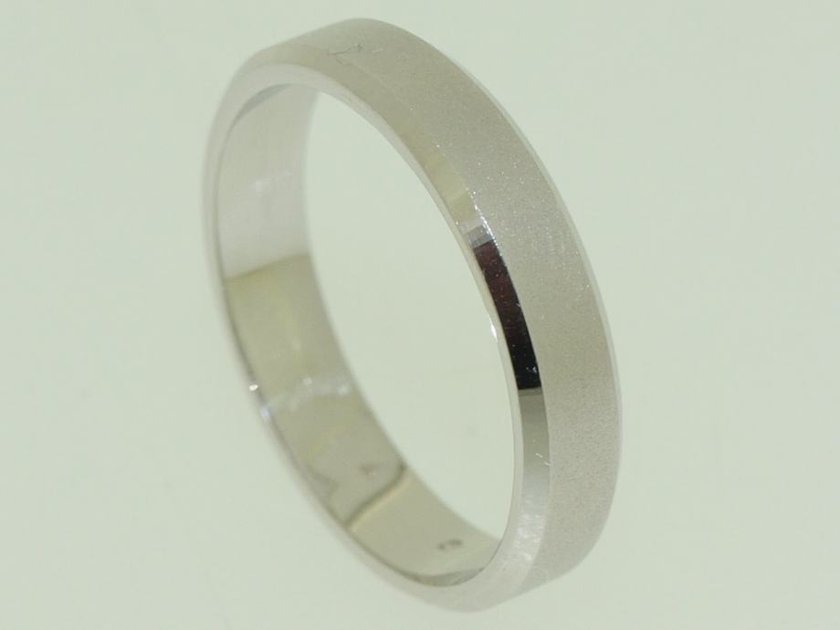 Vjenčani prsten, bijelo 14K zlato, štambilj 585, flah (ravno) iznutra i izvana, izvana kombinacija lagani mat-glat odrezani rubovi.