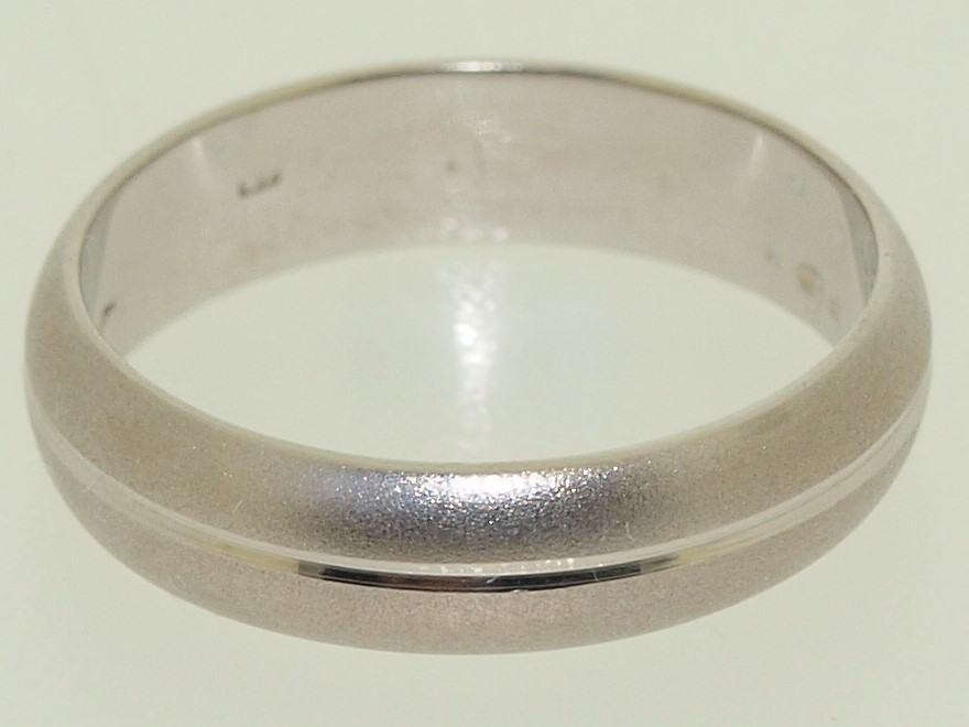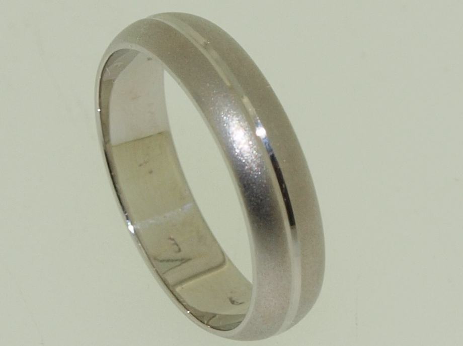 Vjenčani prsten, bijelo 14K zlato, štambilj 585, flah (ravno) iznutra, izvana bombe (oblo), mat + 1 glat kanal po sredini.
