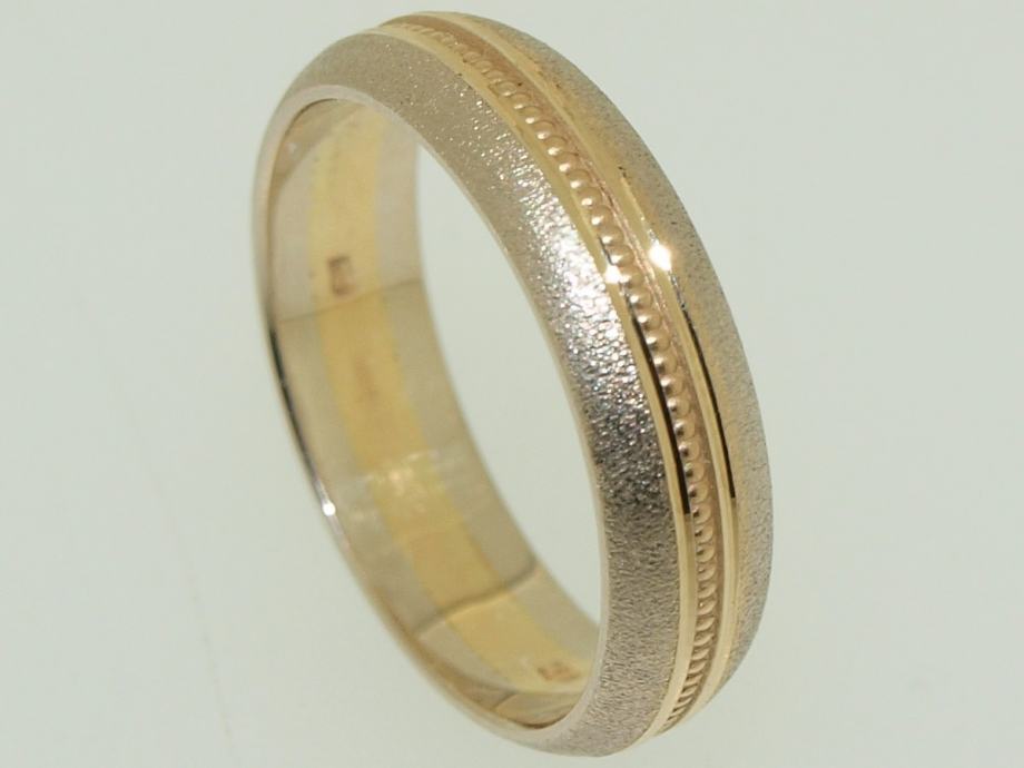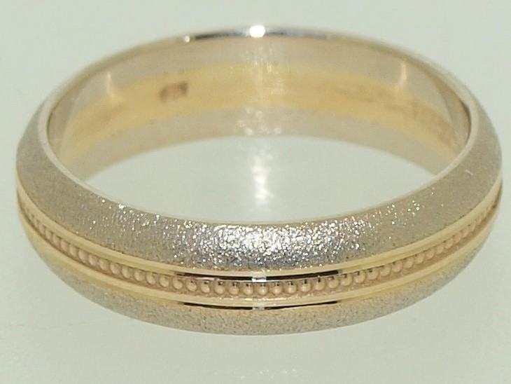 Vjenčani prsten, kombinacija žuto-bijelo 14K zlato, štambilj 585, bijelo 2 mm + žuto 1 mm + bijelo 2 mm, iznutra flah (ravno), izvana bombe (oblo).