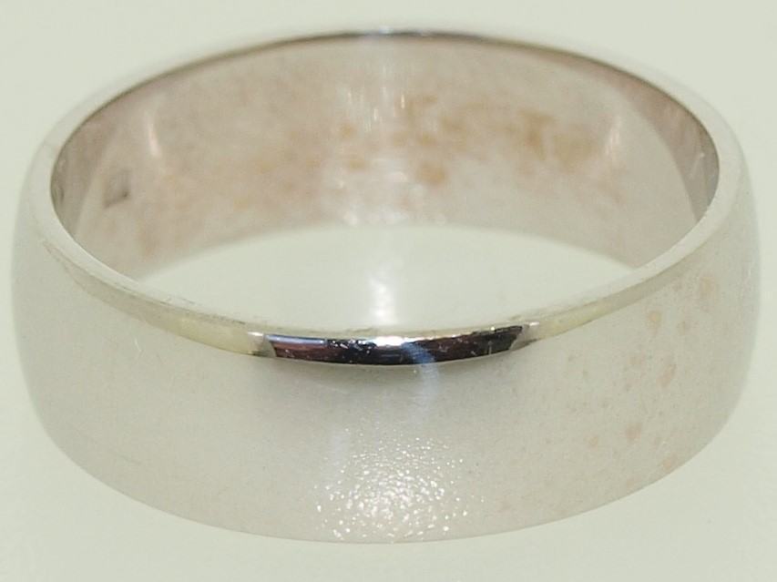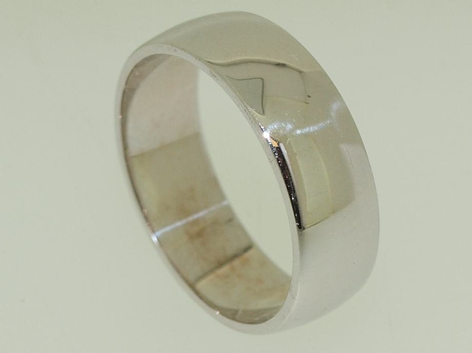 Vjenčani prsten, bijelo 14K zlato, štambilj 585, flah (ravno) iznutra, izvana bombe (oblo), jednostavan, glat.