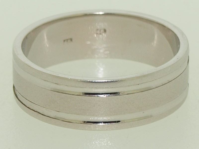 Vjenčani prsten, bijelo 14K zlato, štambilj 585, flah (ravno) iznutra i izvana, kombinacija glat-mat.