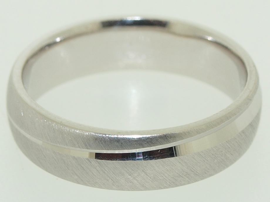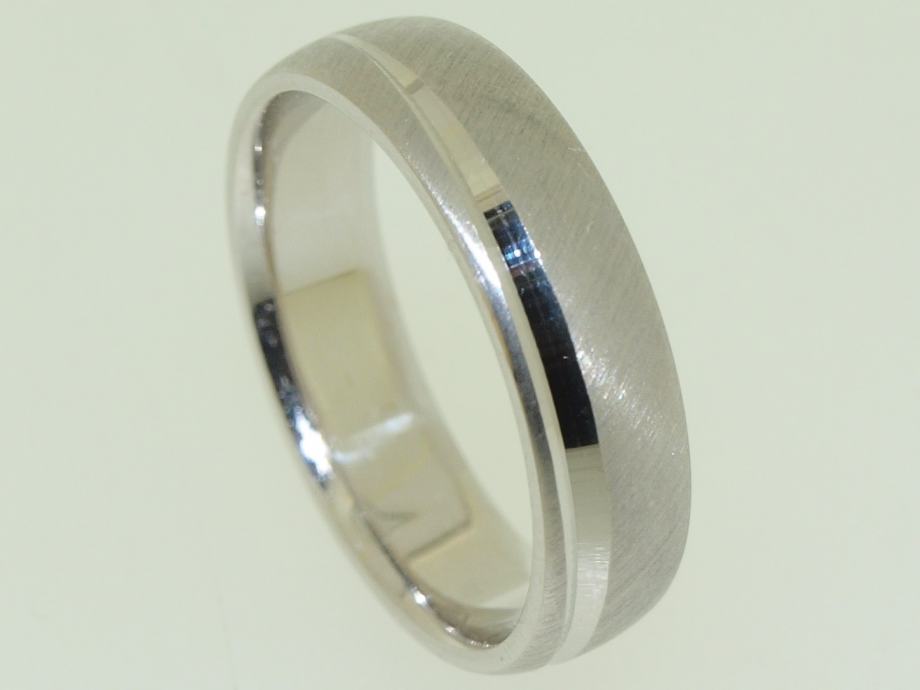 Vjenčani prsten, bijelo 14K zlato, lagani bombe (oblo) izvana i iznutra, izvana mat + glat crta s proširenjem.
