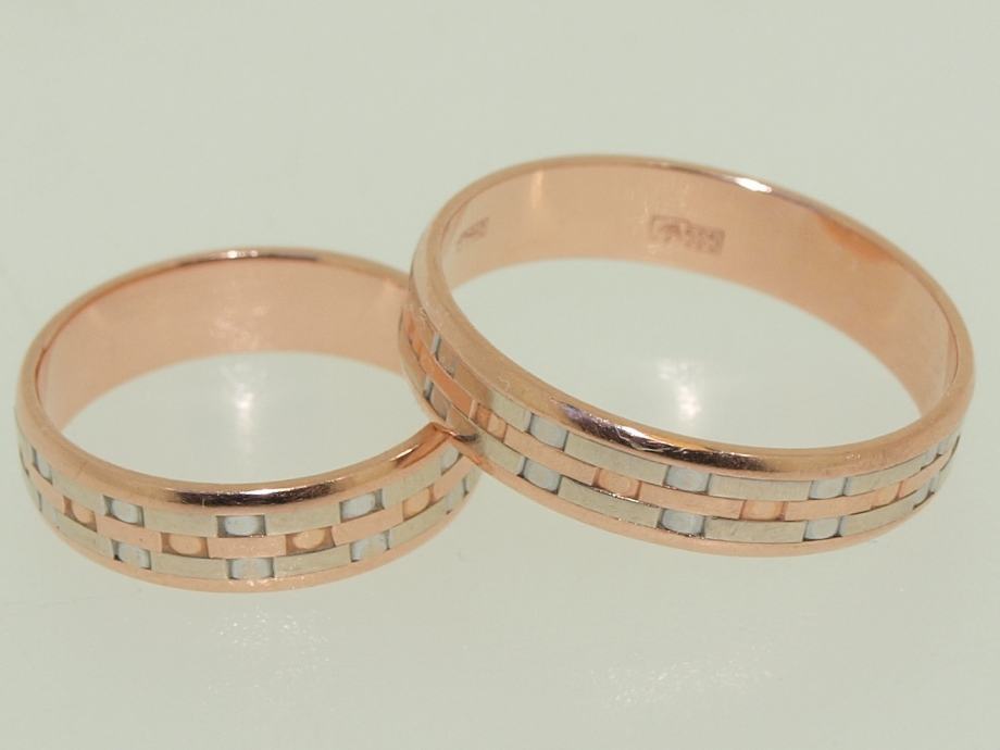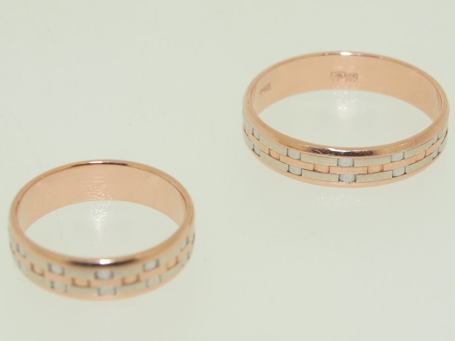 Vjenčano prstenje - par, kombinacija bijelo-crveno 14K zlato, flah (ravno) iznutra i izvana.