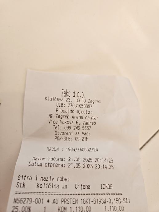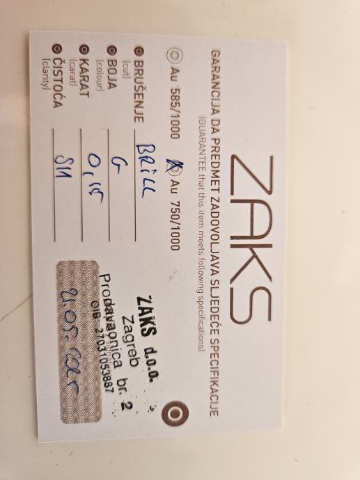 Posjedujem račun i originalno pakiranje. Može provjera u bilo kojoj zlatarni.