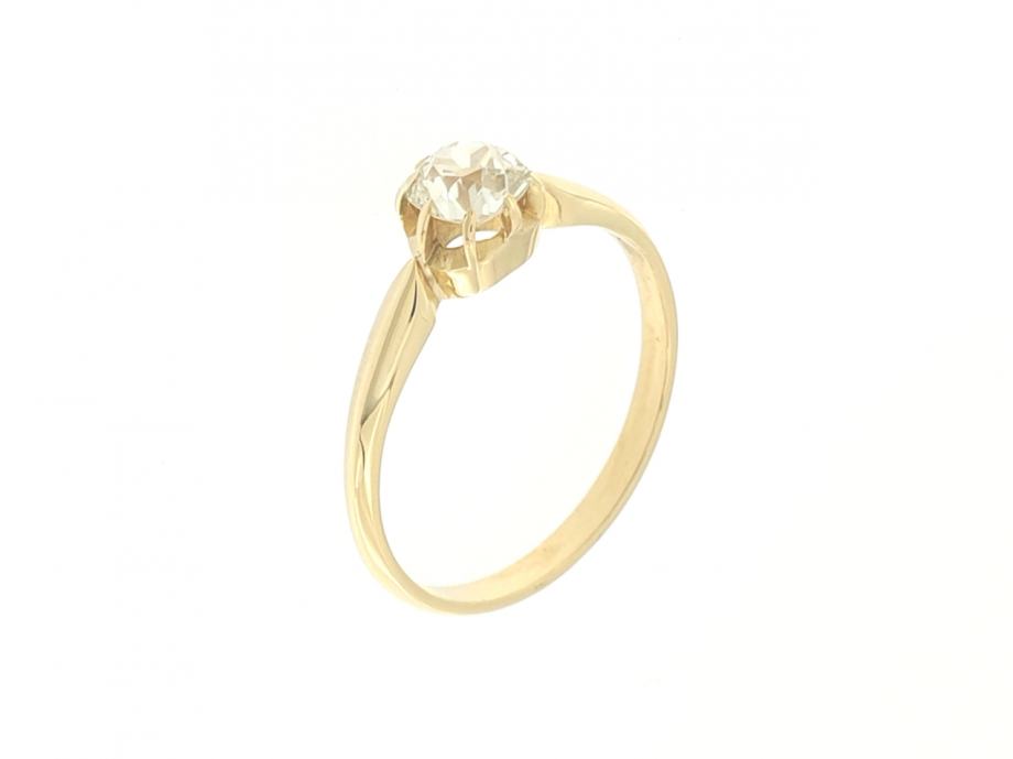 Zlatni prsten, ženski, žuto zlato 18K, štambilj 750, dijamant na 8 krapica.