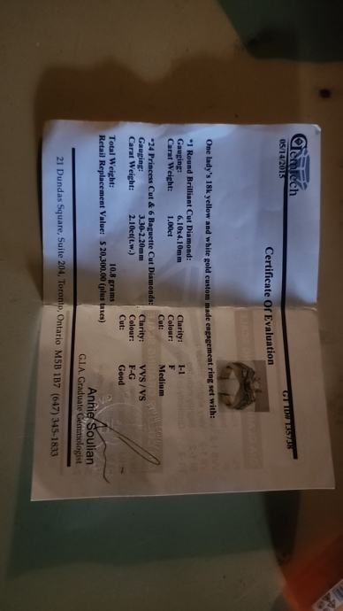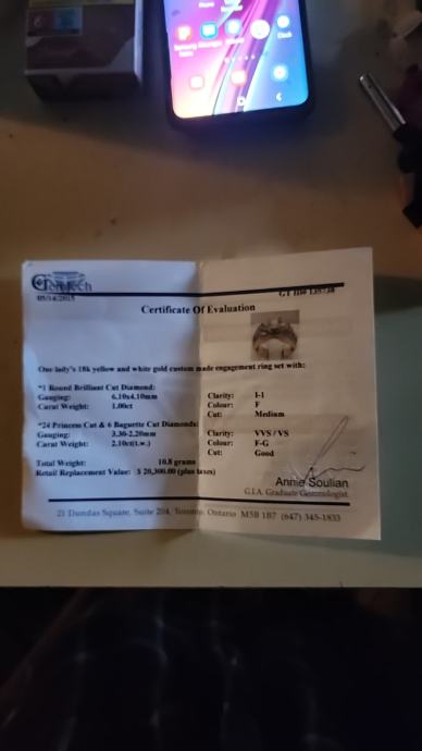 Centralni kamen je jedan KT. Ukupno 25 kamena. Prva ponuda iznad 4500 nosi prsten. Zainteresirani mogu pitati za papir o procjeni (certifikat)