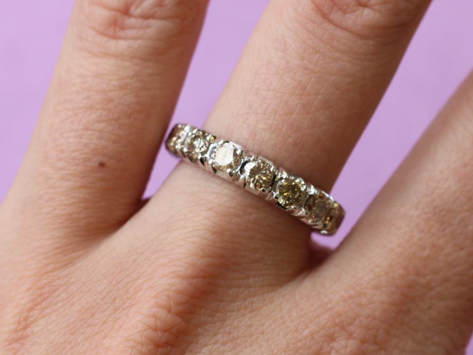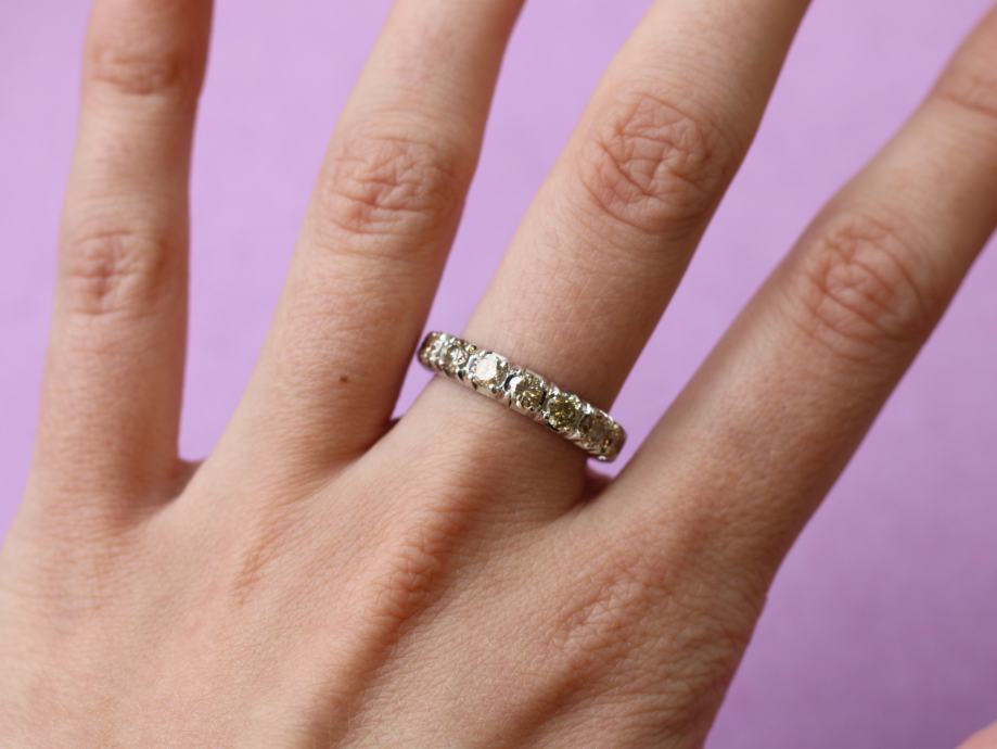 Zlatni prsten, ženski, bijelo zlato 18K, ETERNITY - dijamanti čitav krug.