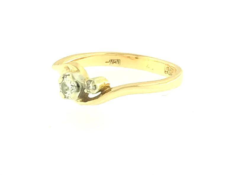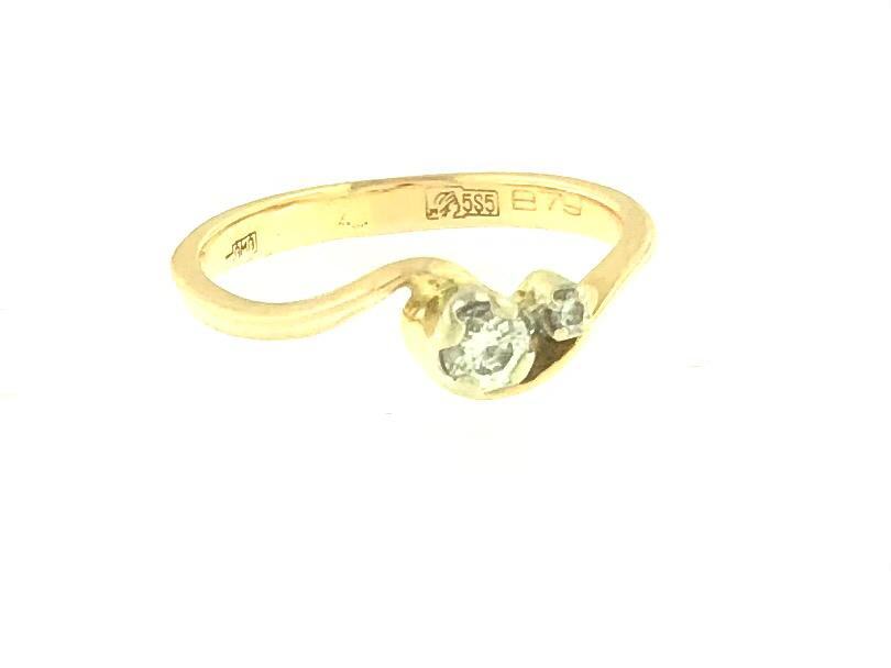 Zlatni dijamantni prsten, 1x0,10ct + 1x0,01ct, crveno, 14K zlato, žig 585.