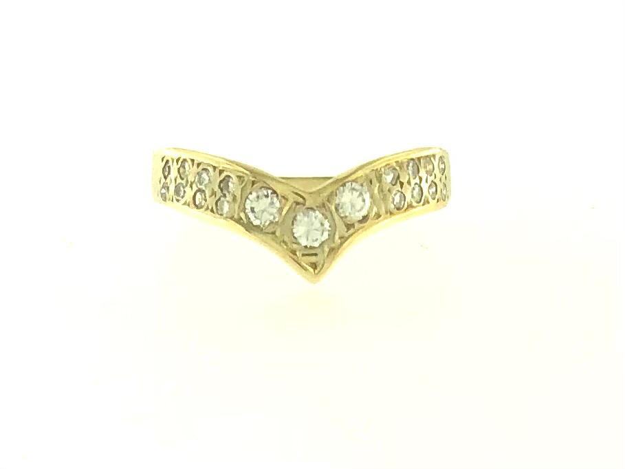 Zlatni dijamantni prsten, 16x0,008ct + 3x0,10ct, žuto 14K zlato, žig 585.