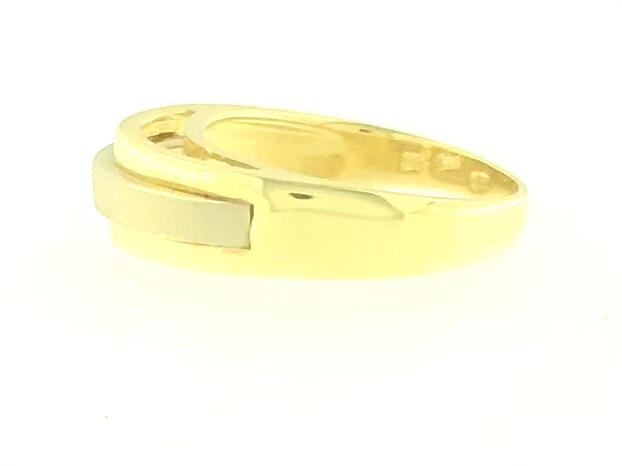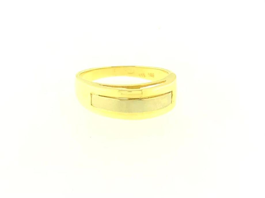 Zlatni prsten, kombinacija žuto-bijelo zlato, glat-mat, 14K, žig 585.