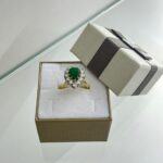 ZLATNI PRSTEN 18K UKRAŠEN BRILIJANTIMA I SMARAGDOM