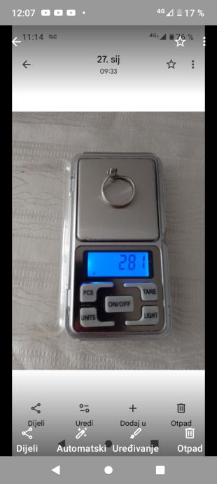 Zlatni prsten 14 kt,bijelo zlato,unutrašnji promjer 19 mm.