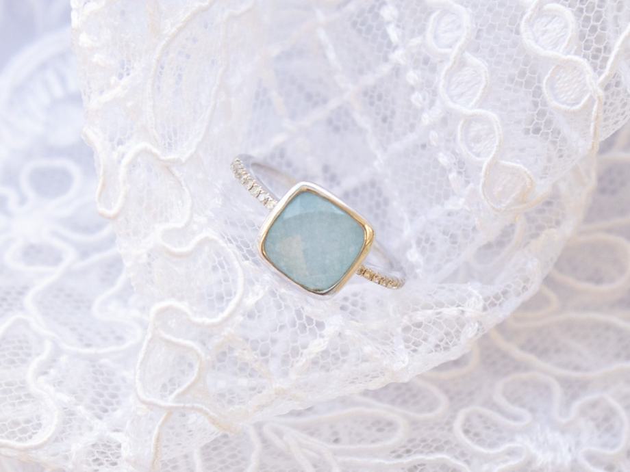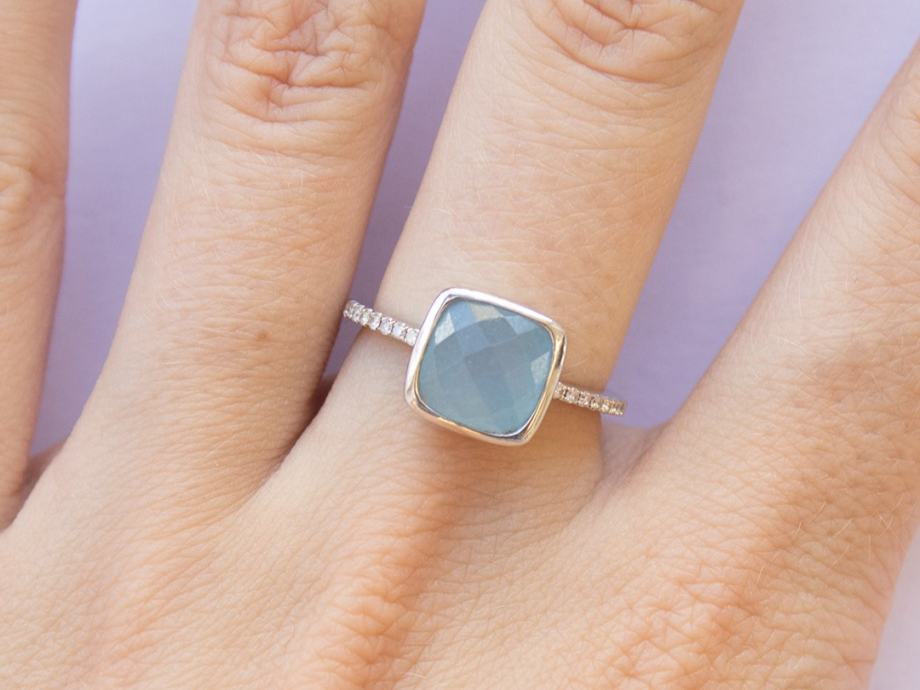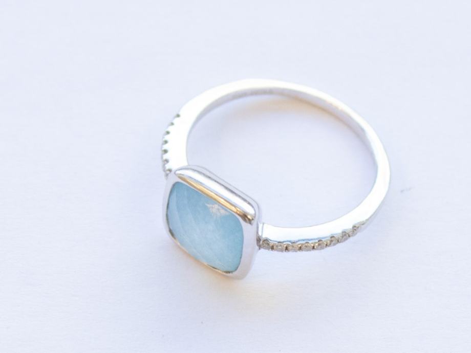Središnji kamen: aquamarin cushion cut 8,00 x 8,50 mm.