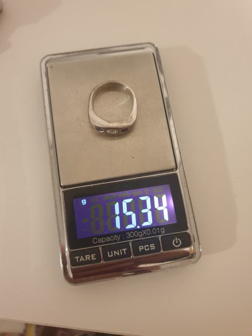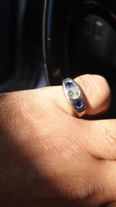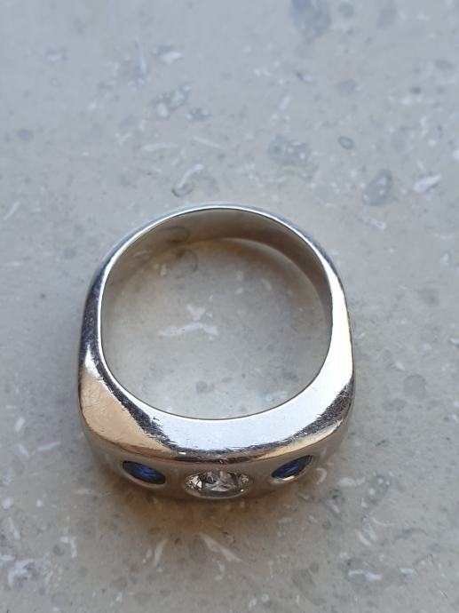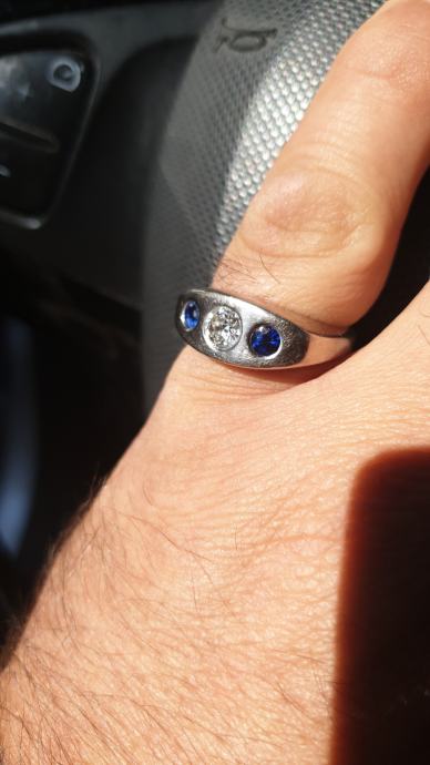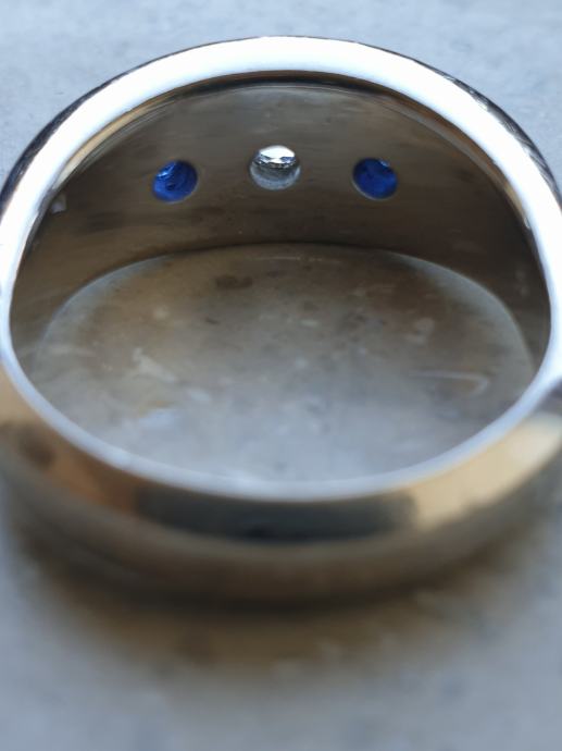 Zlatni prsten bijelo zlato 18k sa dva safira svaki 0.35 ct i dijamantom 1ct.Težine 15,34g promjer 20
