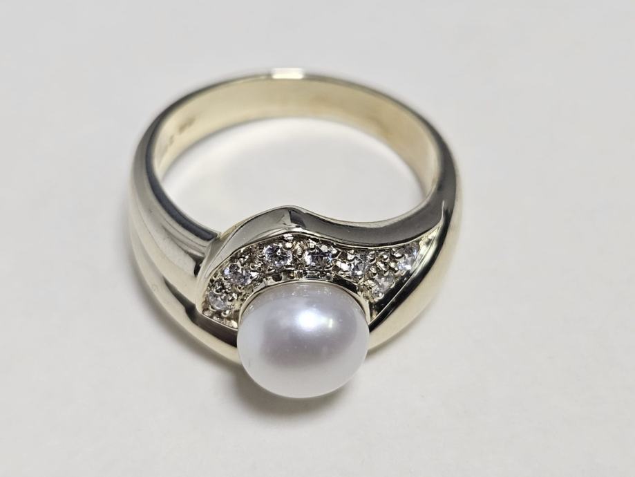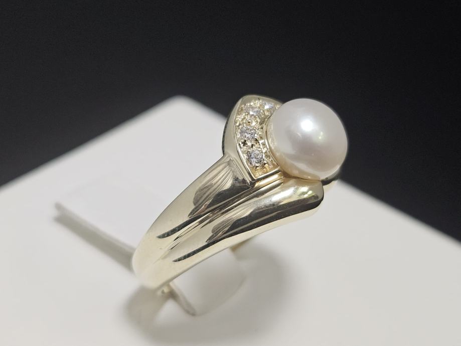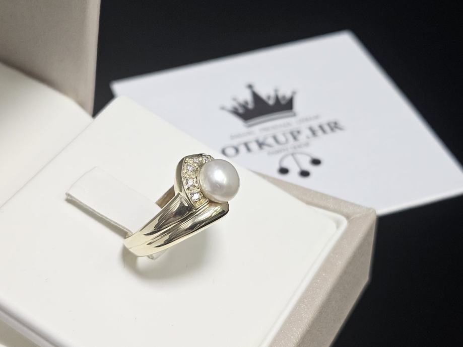 Prodajemo zlatni prsten od 9 karatnog žutog zlata s biserom