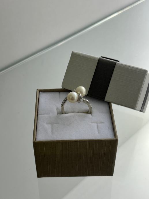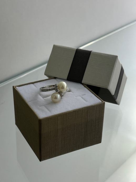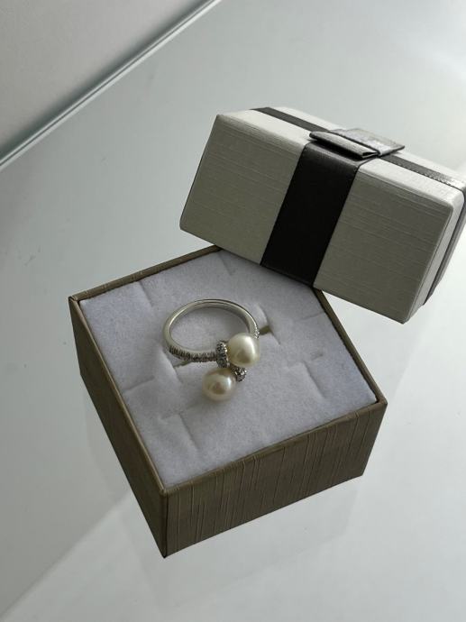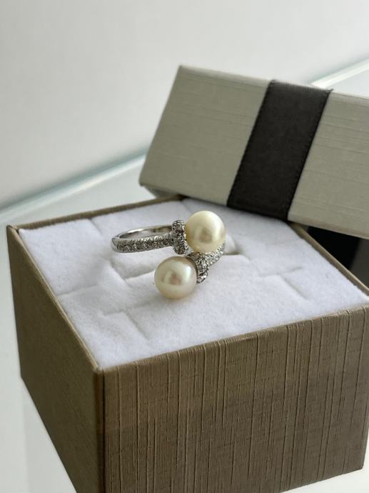ZLATNI PRSTEN UKRAŠEN BISERIMA I BRILJANTIMA
