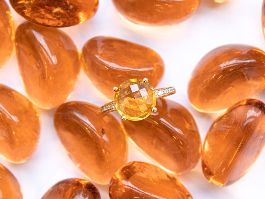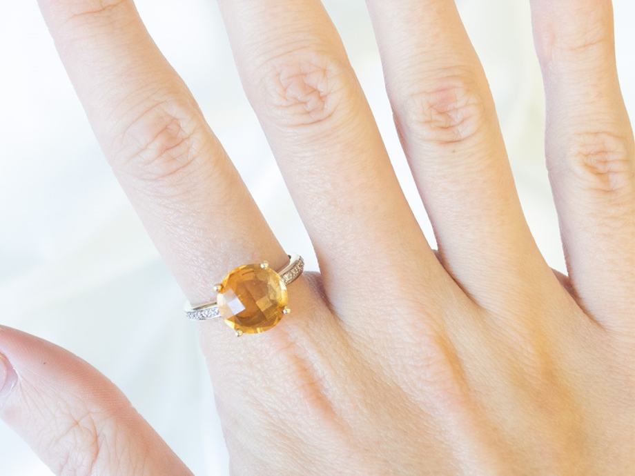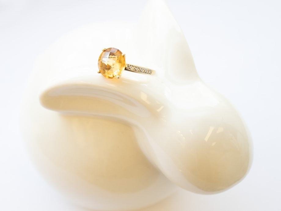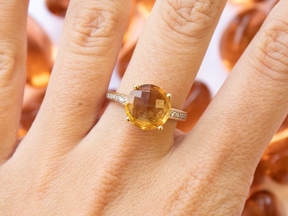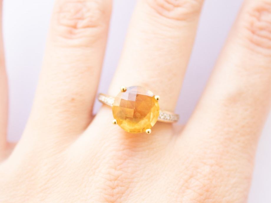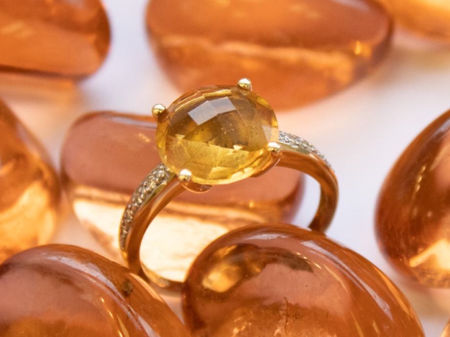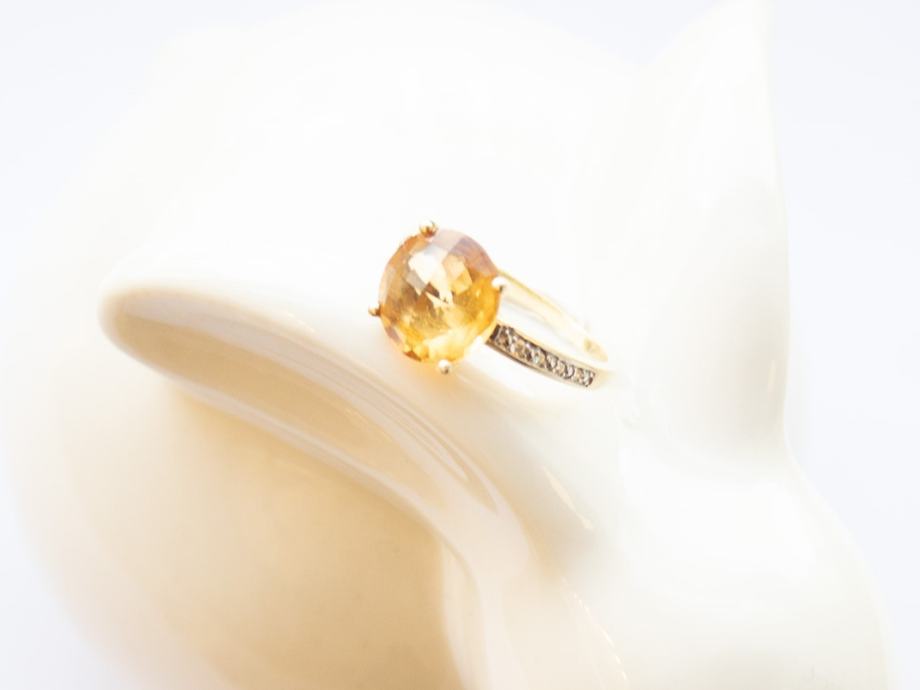 ZLATNI PRSTEN S CITRINOM I DIJAMANTIMA 14K (585) 3,22g NOVO GOLD SHOP