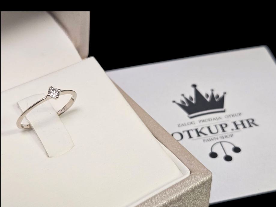 Prodajemo prsten od 14 karatnog bijelog zlata s dijamantom.