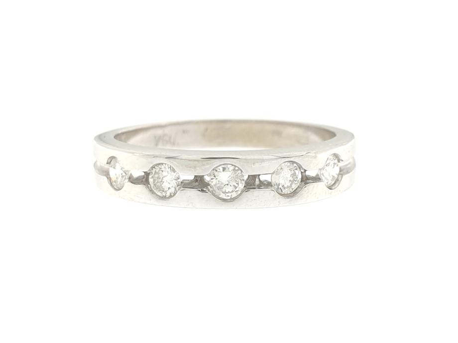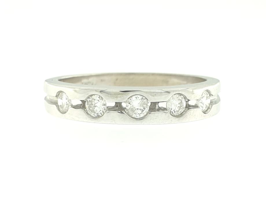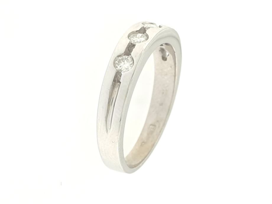 Zlatni prsten, ženski, bijelo zlato 18K, žig 750, 5 dijamanata 0,065ct.