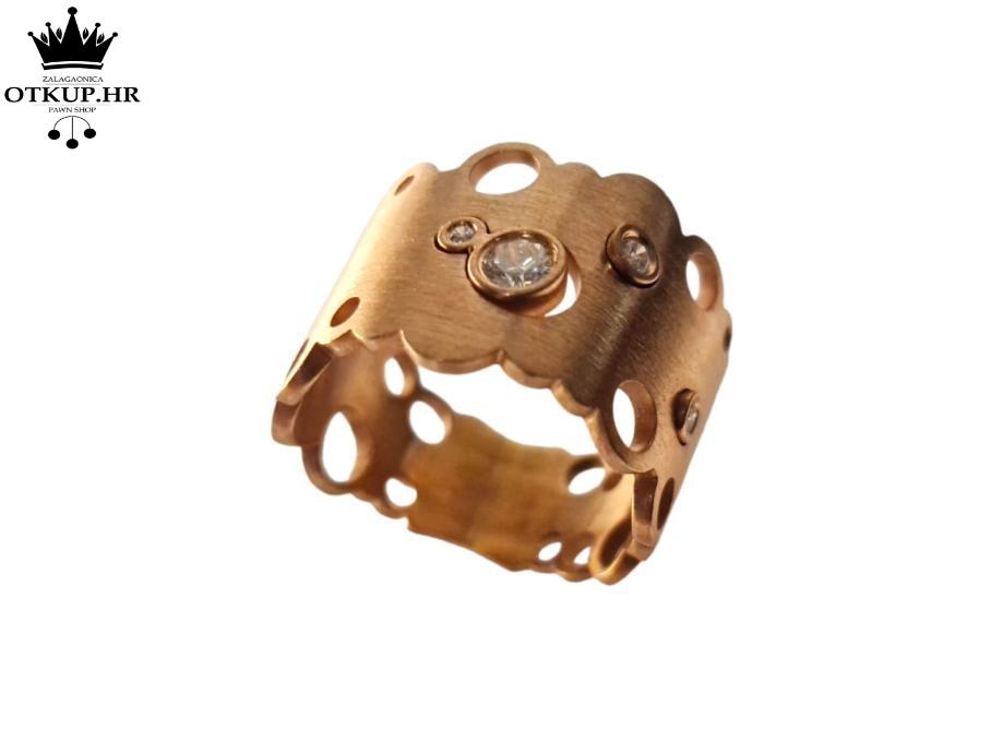 Prodajemo zlatni prsten od 18 karatnog žutog zlata s 4 dijamanta.