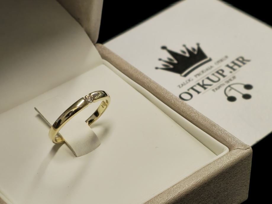 Prodajemo prsten od 14 karatnog žutog zlata s dijamantom 0,05 karata.