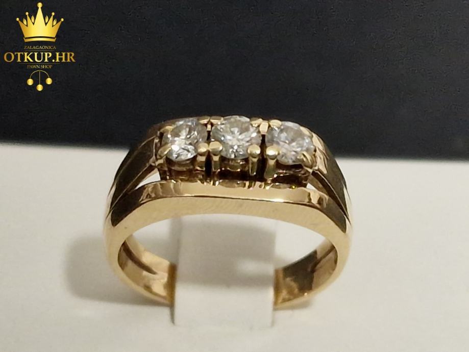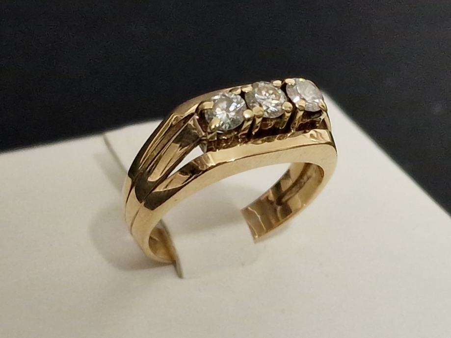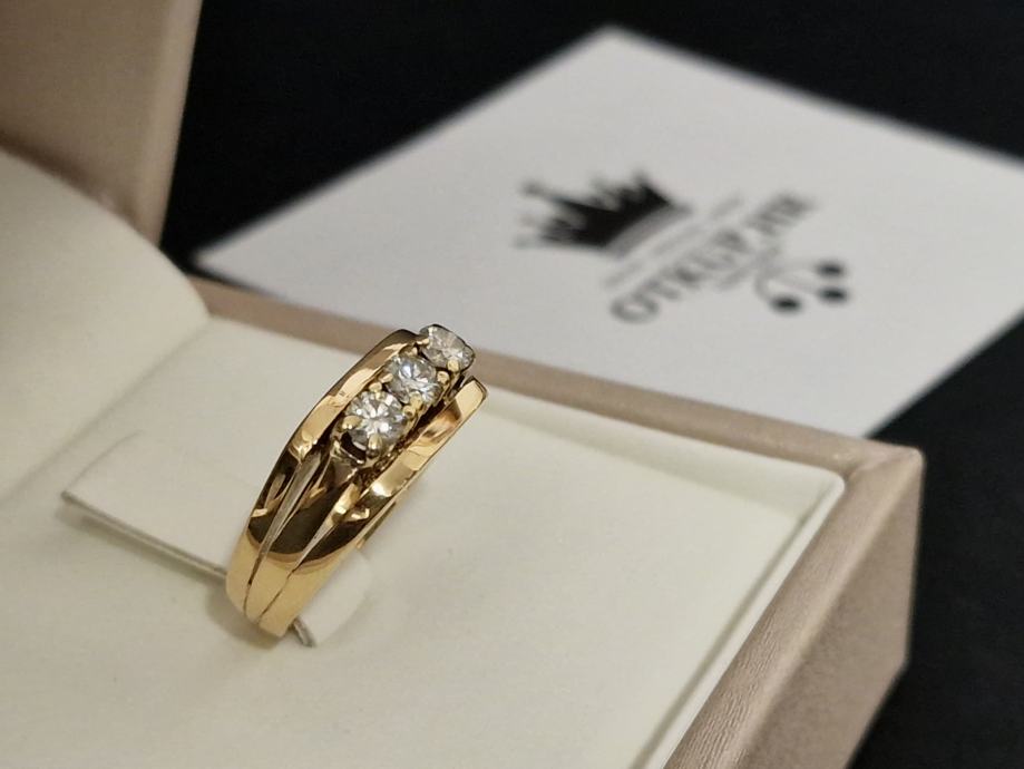 Prodajemo prsten od 18 karatnog žutog zlata s dijamantima briljantnog brusa.