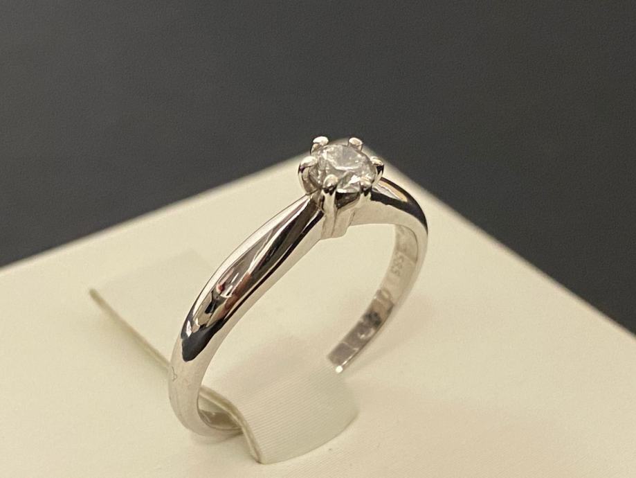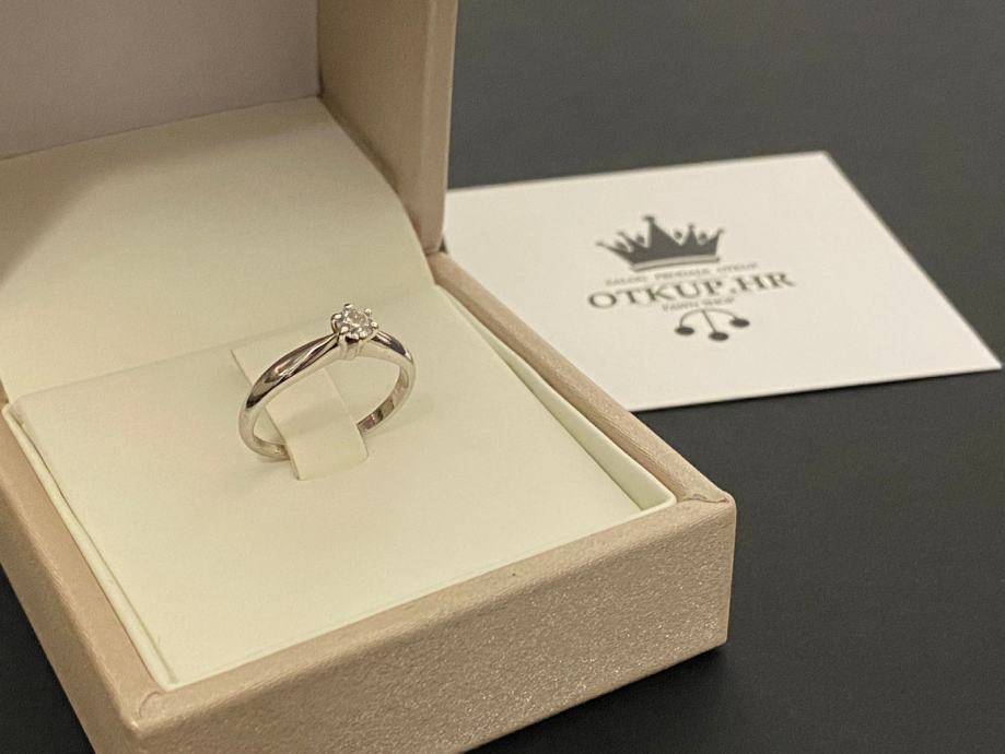 Prodajemo prsten od 14 karatnog bijelog zlata s dijamantom.