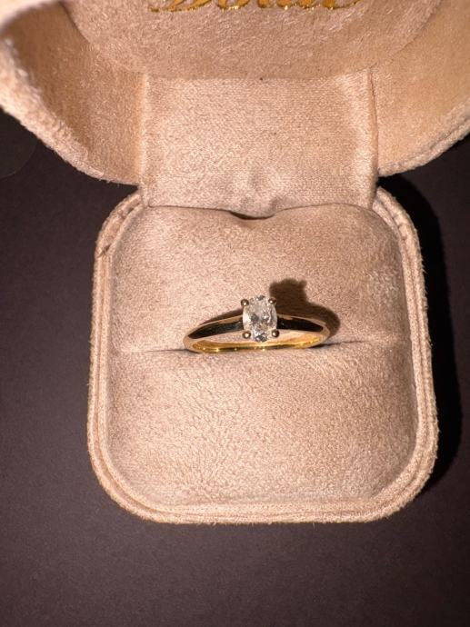 Prodajem zlatni prsten s dijamantom, odličan kao zaručnički prsten, kupljen 05/2025.