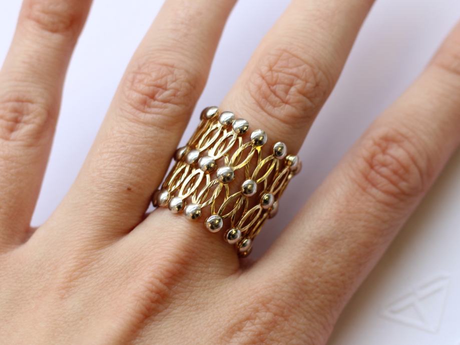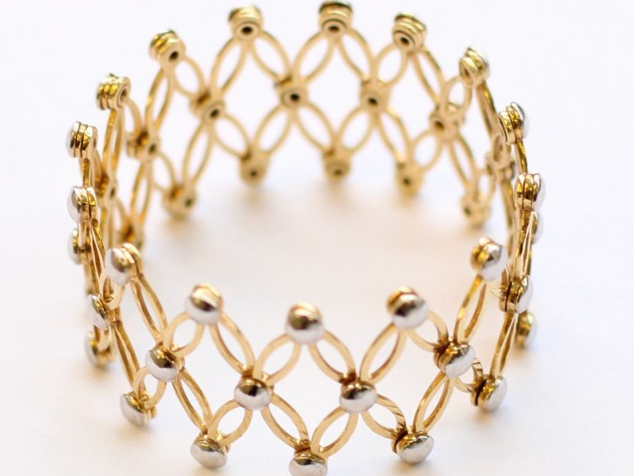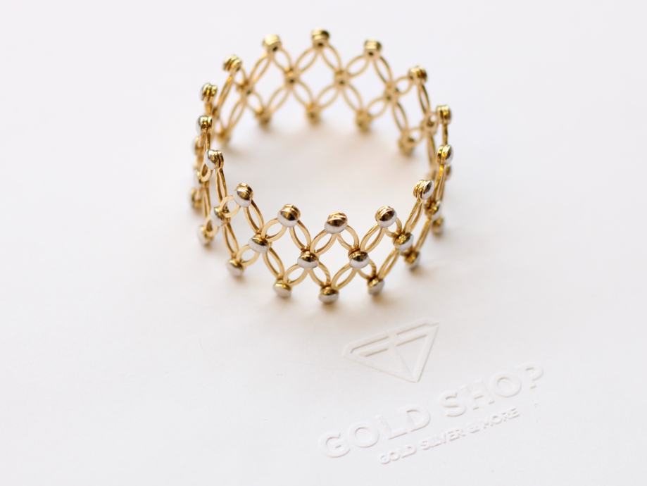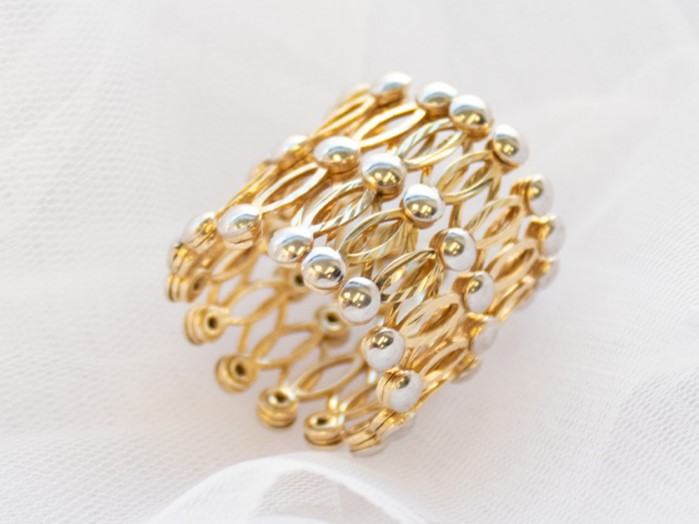 Zlatni prsten/narukvica u jednom, kombinacija žuto-bijelo zlato 14K, štambilj 585, razvlači se i skuplja - može se nositi i kao narukvica!