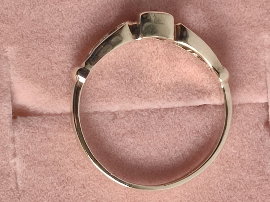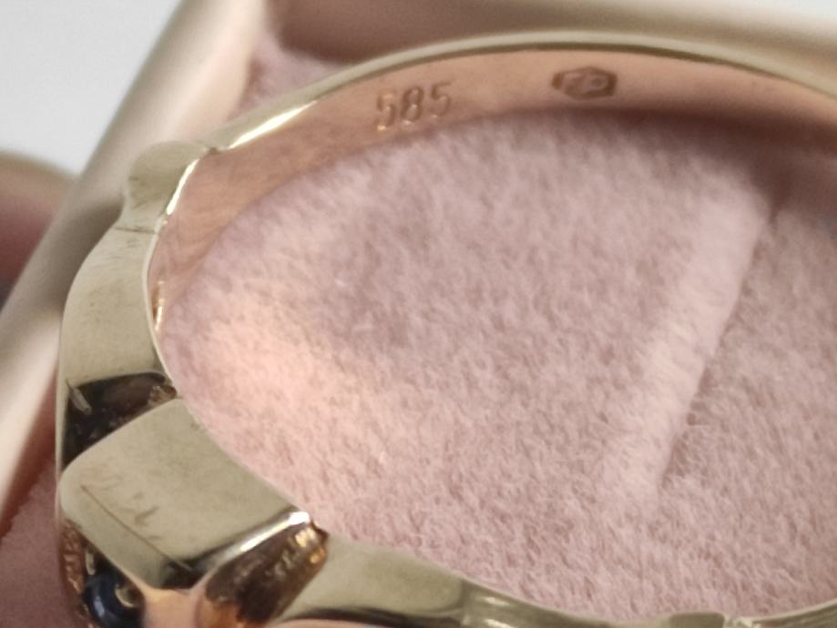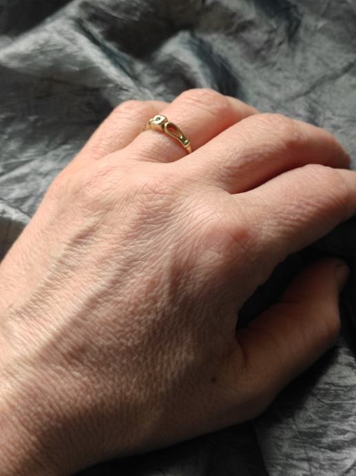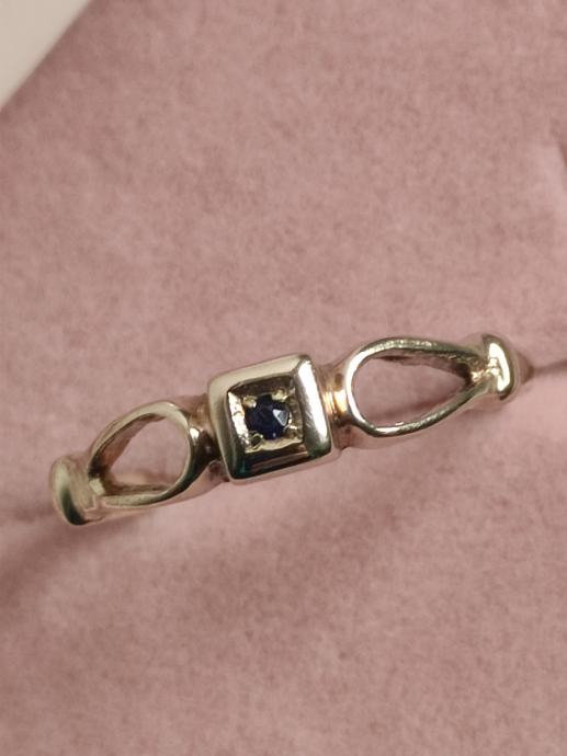 Novi prsten od žutog 14- karatnog žutog zlata sa tamno plavim cirkonom u sredini, veličina tj.promjer 17 mm.
