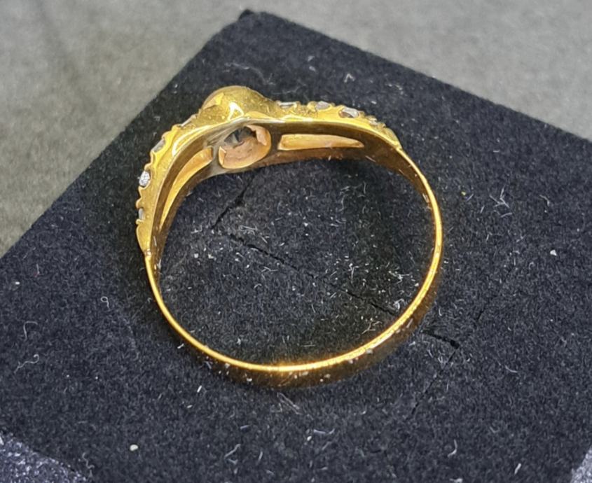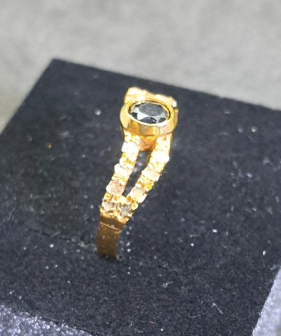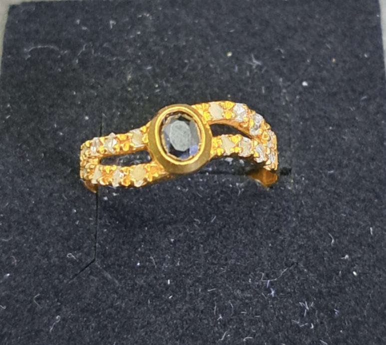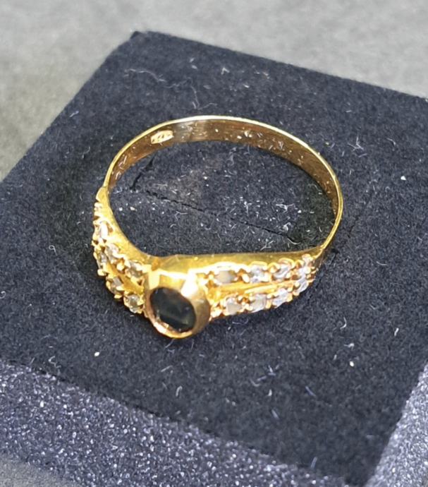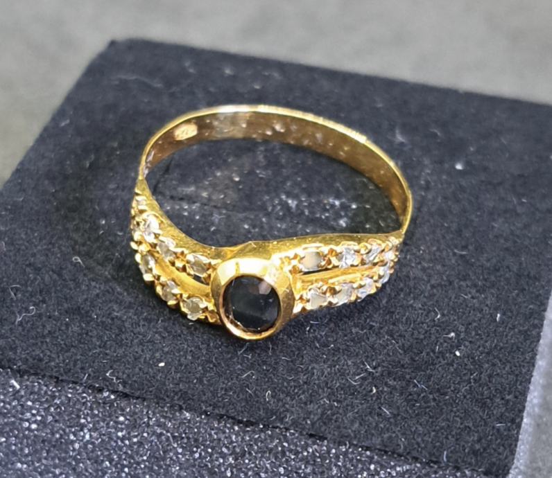 9kt zlatni prsten težine 2.3gr te sadrži 1 crni safir 0.41kt te 17dijamanata 0.30kt