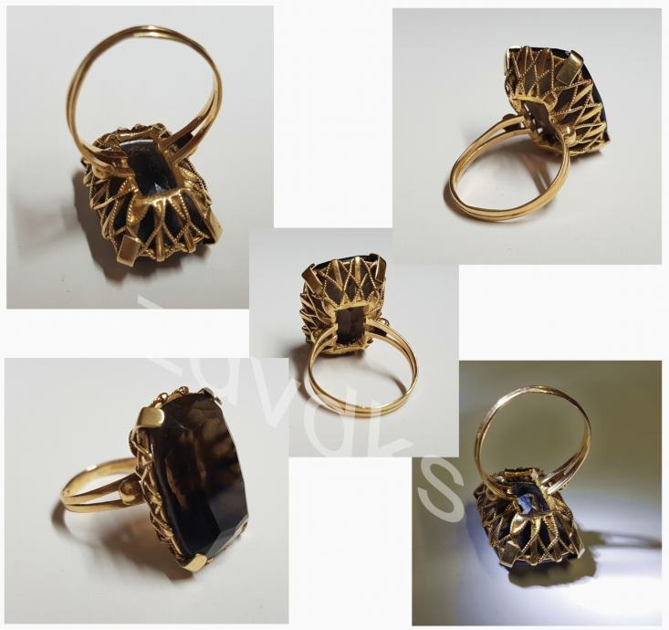 VINTAGE, ZLATNI PRSTEN SA POLUDRAGIM CRNIM KAMENOM, 14 kt, ZLATO *585