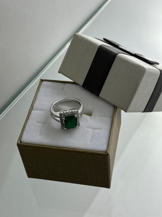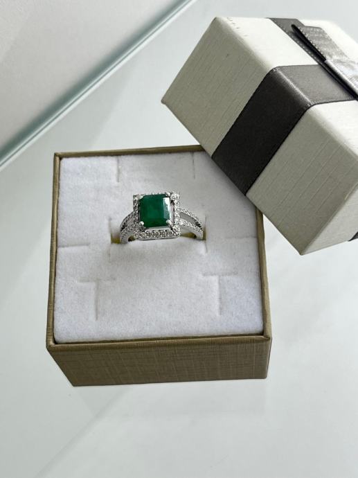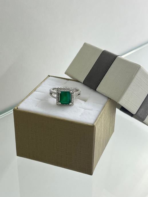 ZLATNI PRSTEN UKRAŠEN SITNIM BRILJANTIMA I SMARAGDOM
