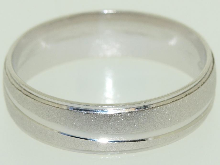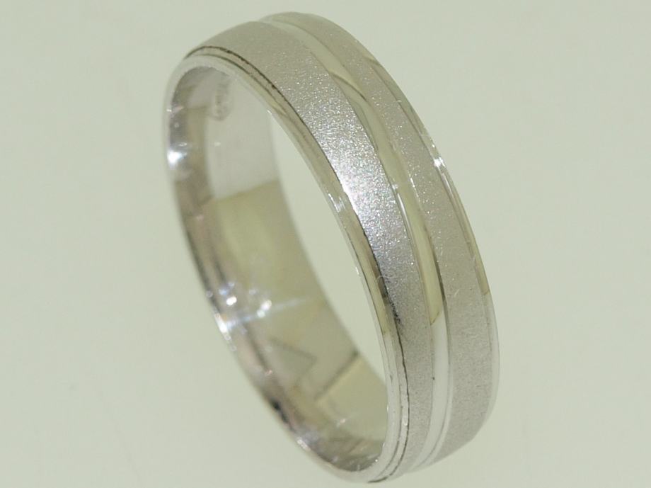 Vjenčani prsten, bijelo 14K zlato, žig 585, lagani bombe (oblo) izvana i iznutra, izvana mat + glat kanali.