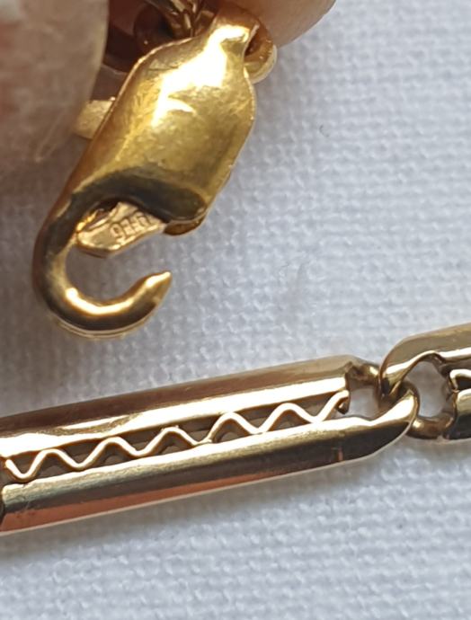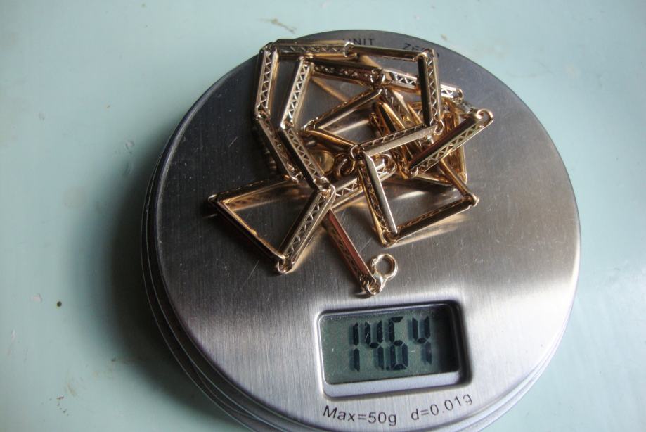 Krasan stari komad nakita kraj 19.stoljeća lanac ručni rad stari vez izrađen je od 14 kt zlata ili 585 čistoće dok je kopća izrađena od 22kt zlata i stavljena na njega te je novije proizvodnje , stara originalna je bila okrugla klasićna koja nije bila sigurna nova kopća ima žig 916 (22kt) -tezina 14,64 grama