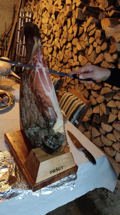 Cijena pršuta sa kosti je 20 Eura za 1 kg.