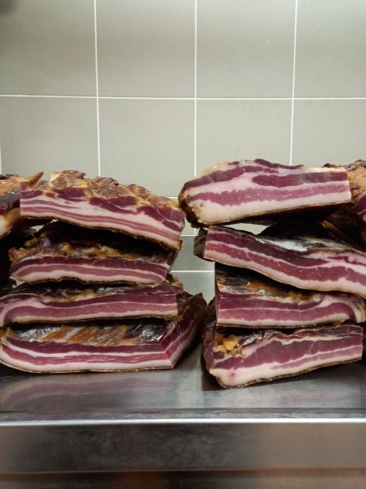 Prodajem suhu domaću slaninu od svinja iz domaćeg uzgoja , vakumirana , tel. 098 283 051, cijena 13 eur po kg