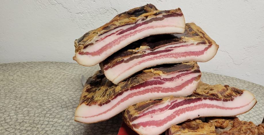 Prodajem suhu domaću Slavonsku slaninu od svinja iz domaćeg uzgoja, vakumirana se isporučuje. Moguće preuzeti na kućnoj adresi ili Besplatna dostava u Slavonski Brod.
